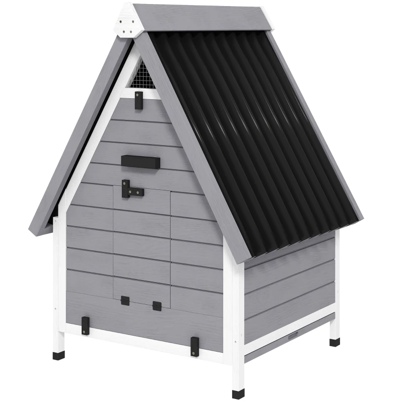 Features: - Water-resistant roof and fir wood frame ensure year-round durability - Elevated 3.9" base blocks moisture from the ground, keeping the inside dry - Features a lockable ramp door for secure housing - A removable main door and slide-out tray make deep cleaning effortless - Customize the interior layout with its removable nesting box and roosting bar - Its compact design is suitable for small backyards for 1–2 chickens, rabbits, geese, or ducks - Assembly required Specification: - Color: White, Gray, Black - Material: Fir Wood, Plastic - Overall Dimensions: 30.7" W x 28.9" D x 43.3" H - Main House: 27.2" W x 23.6" D x 34.3" H (Without eave) - Main House Inner Size: 25.6" L x 22" W - Main Door Size: 22.8" W x 26" H - Front Ramp Size: 8.7" W x 13" H - Nest Box Size: 13.8" L x 11.4" W x 5.5" H - Nest Box Inner Size: 13" L x 10.6" W - Tray Size: 27.2" L x 20.9" W - Roosting Bar: 17.7" L x 7.9" W x 5.9" H - Off-ground Height: 3.9" H Package Includes: - 1 x Chicken Coop - 1 x Manual