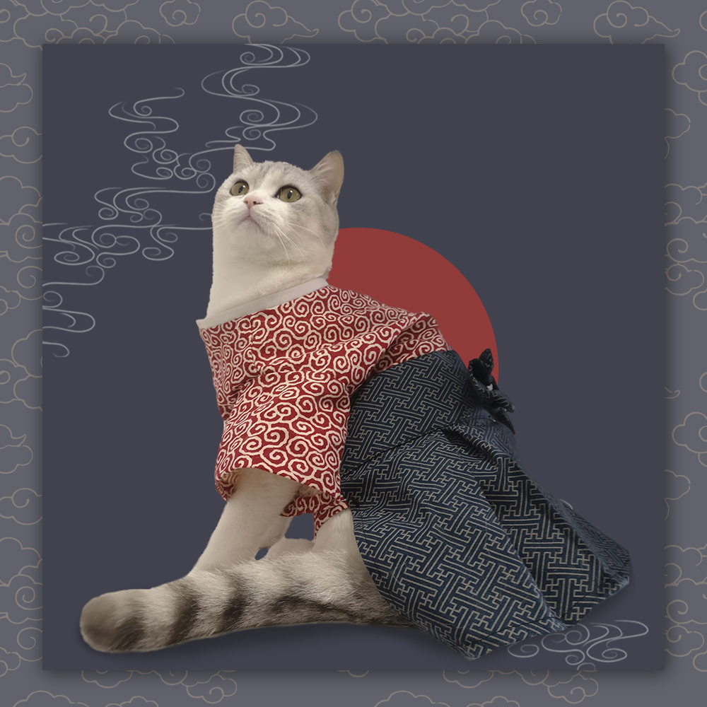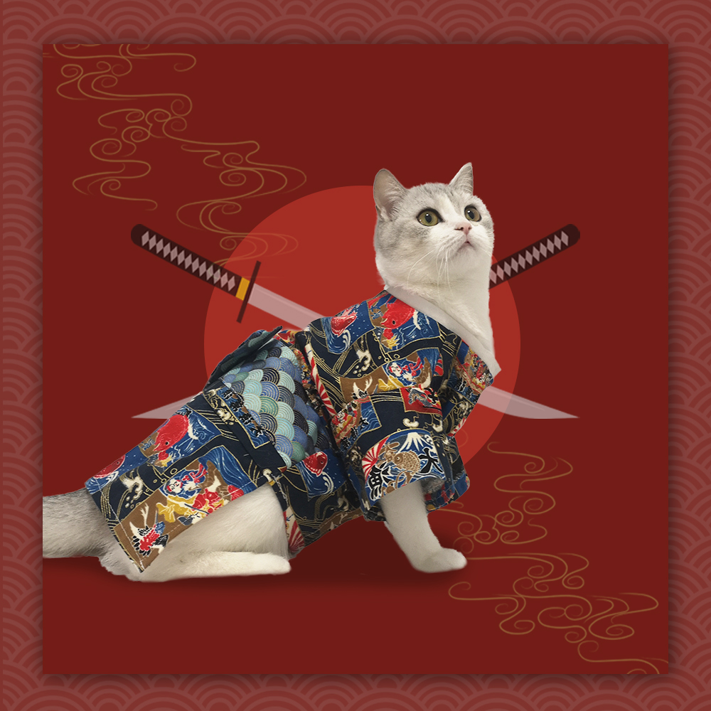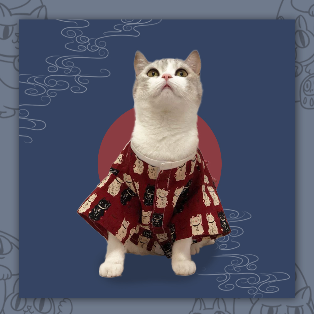 Color/color: Japanese fishing/fushou cat/dark red auspicious cloud/dark blue auspicious cloud