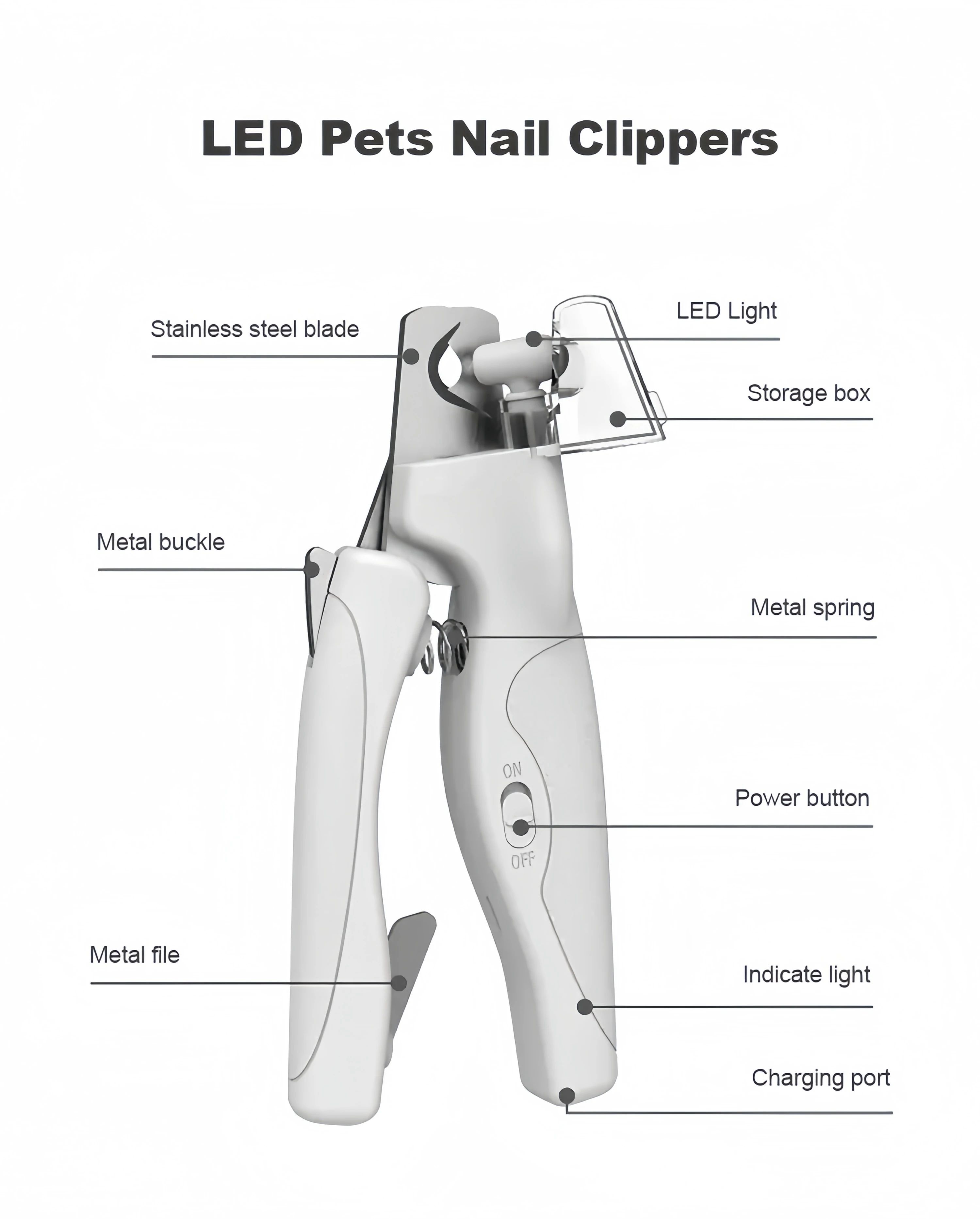Pet Nail Clippers With Light For Dogs And Cats - Rechargeable, Easy And Safe Trimming With Precision Blades And LED Light