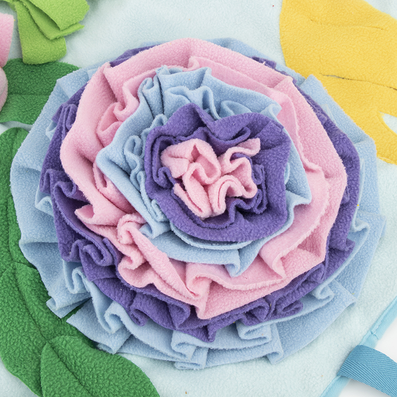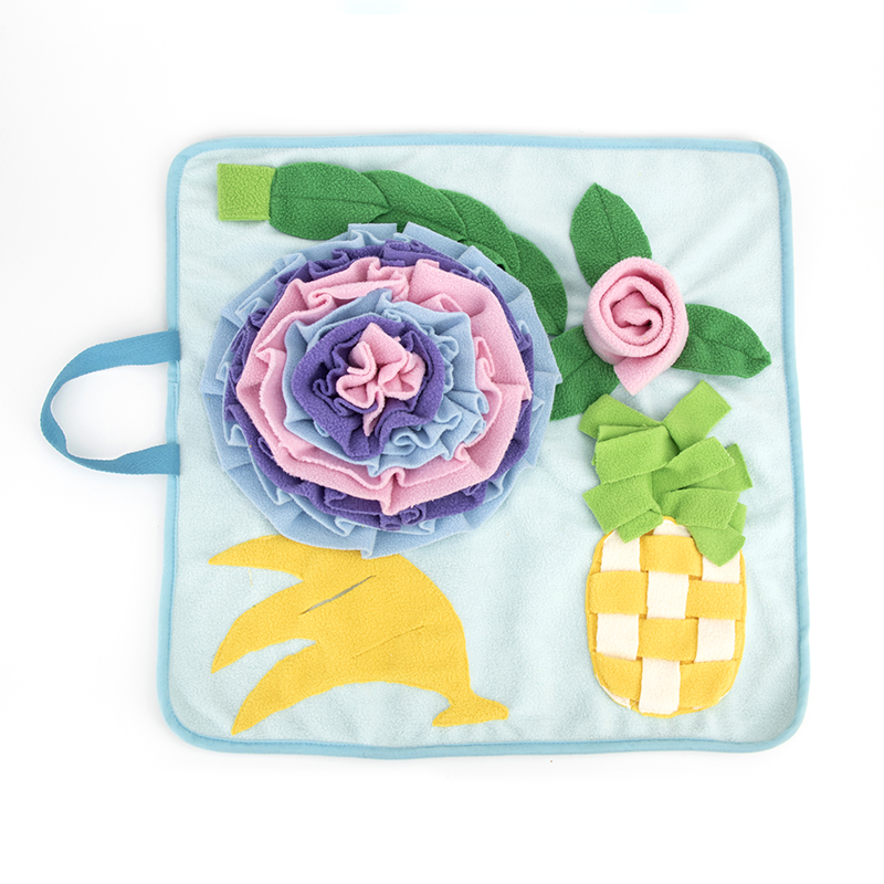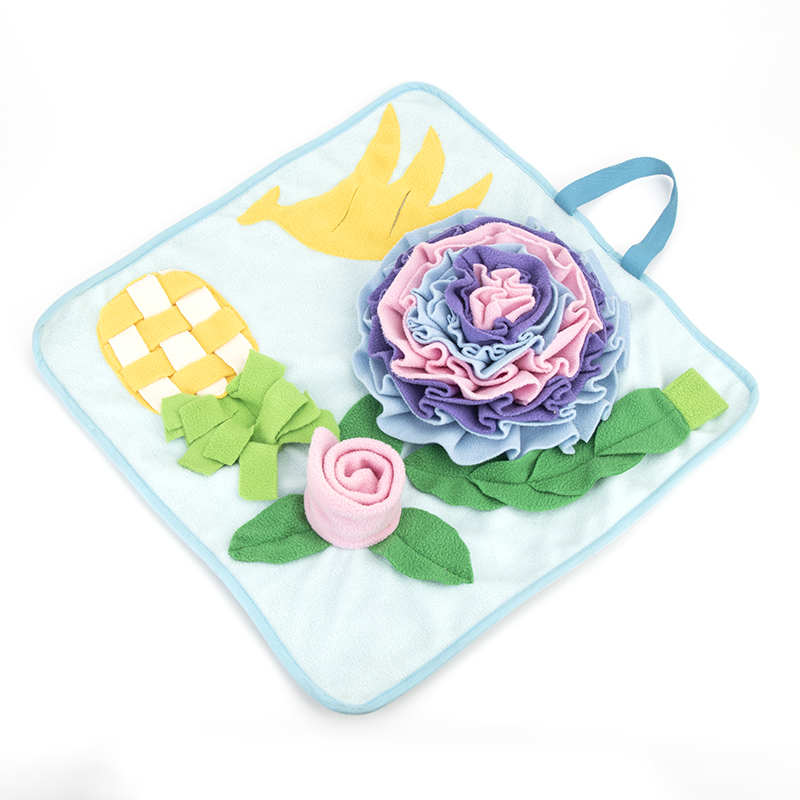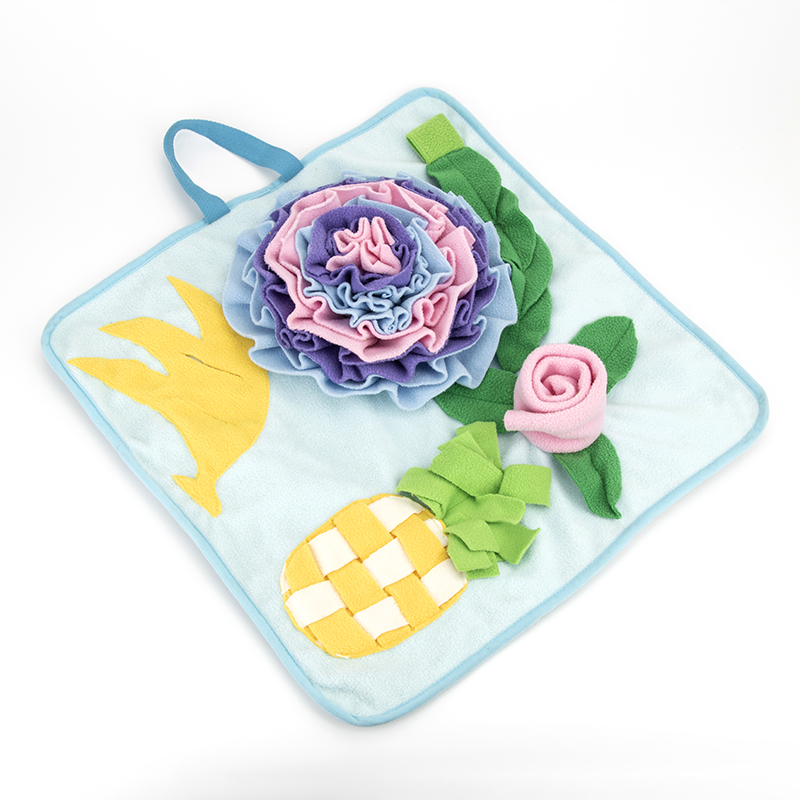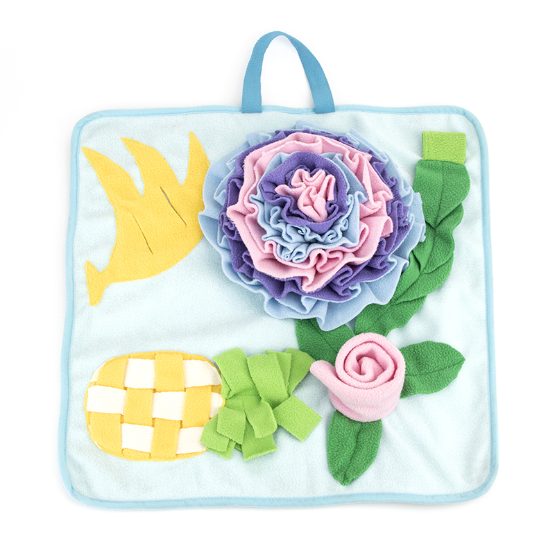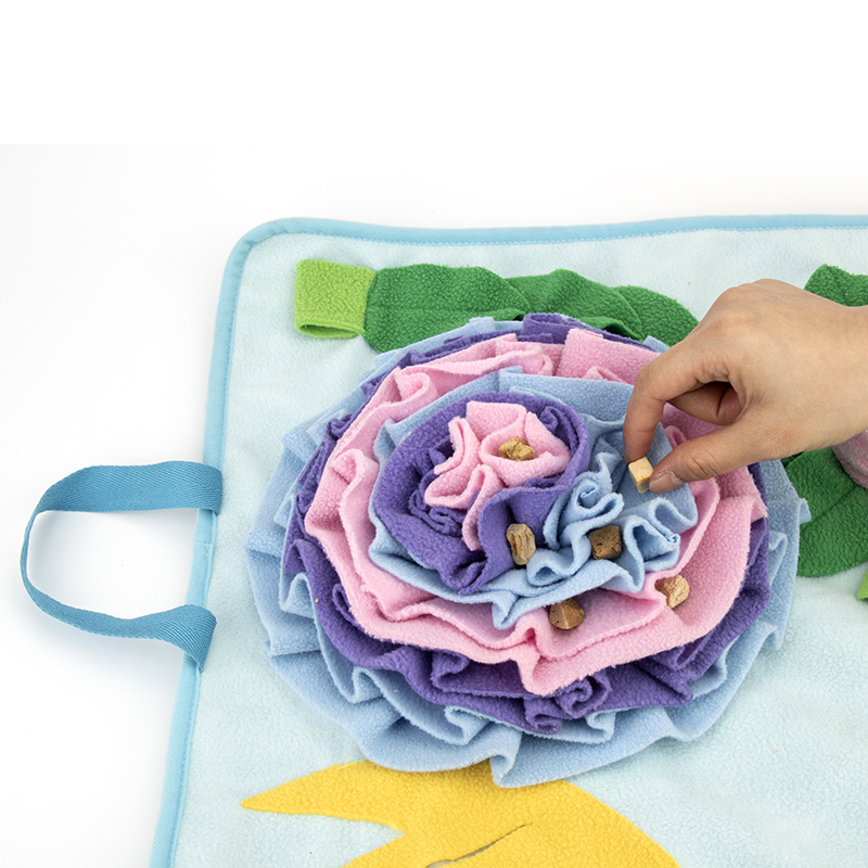 Instruction: Puzzle Training Mat, Hide the treats in the snuffle mat and let your dog find them.