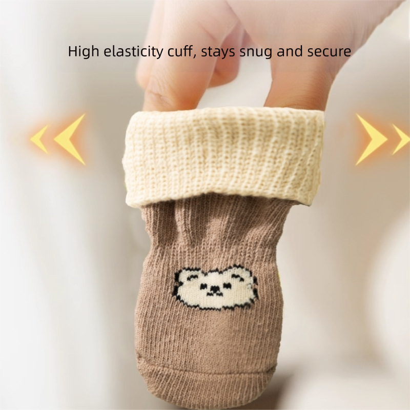 Keep your pet’s paws protected and stylish with these DogZone Nonskid Pet Socks! Available in multiple designs—brown with a bear face, yellow with a cartoon character, and yellow-brown with a bear outline—each pair features a nonskid sole for traction, a ribbed cuff for a secure fit, and adorable prints for a playful touch. The soft knitted fabric ensures comfort, while the nonskid design prevents slipping on smooth floors. Perfect for indoor wear or to keep paws clean during walks, these socks combine functionality, cuteness, and brand reliability, making them a must-have for pet parents who want their furry companions to stay safe and look adorable.