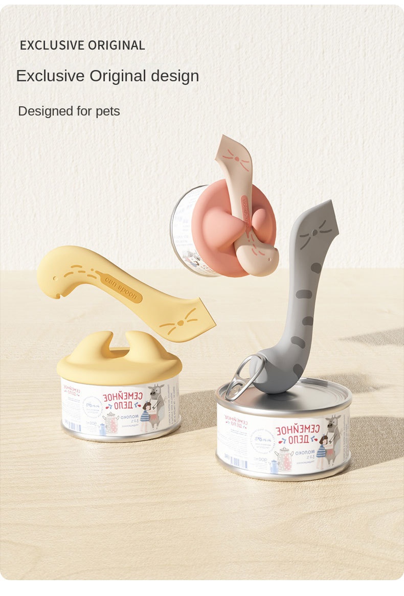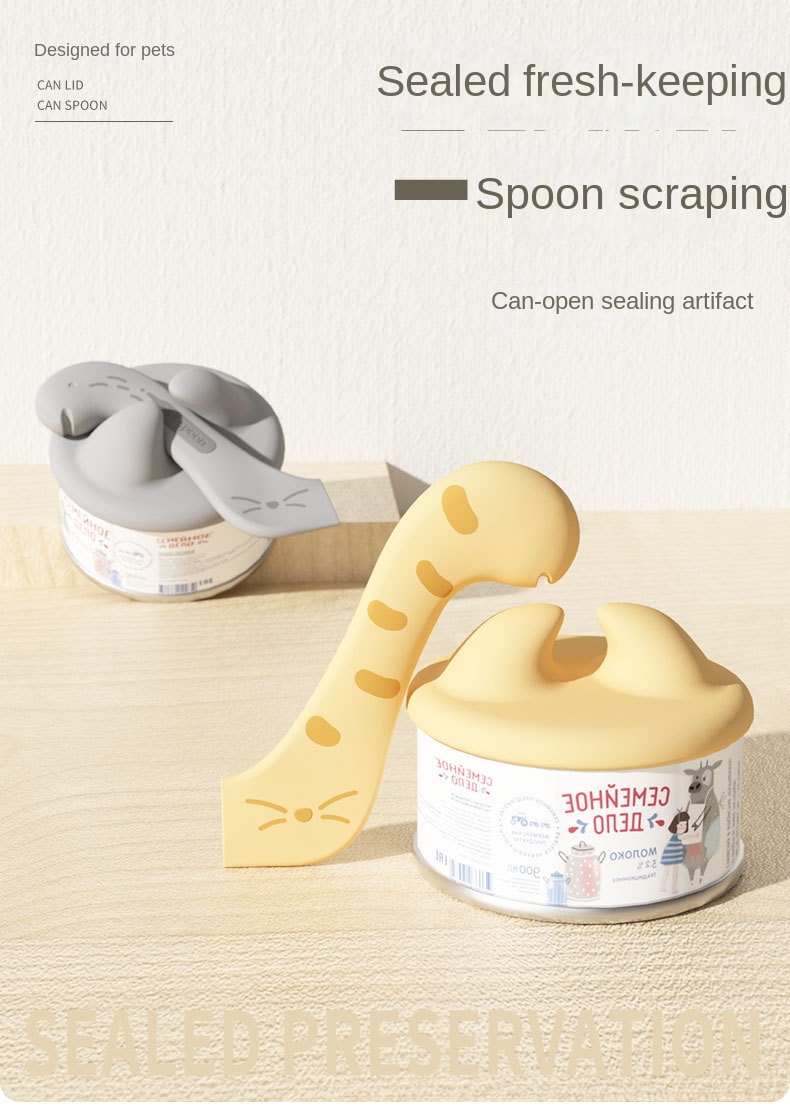 Pet Spoon Multifunctional Can Opener Wet Food Mixing Spoon Silicone Cat Can Sealing Cover Food Storage Dog Accessory