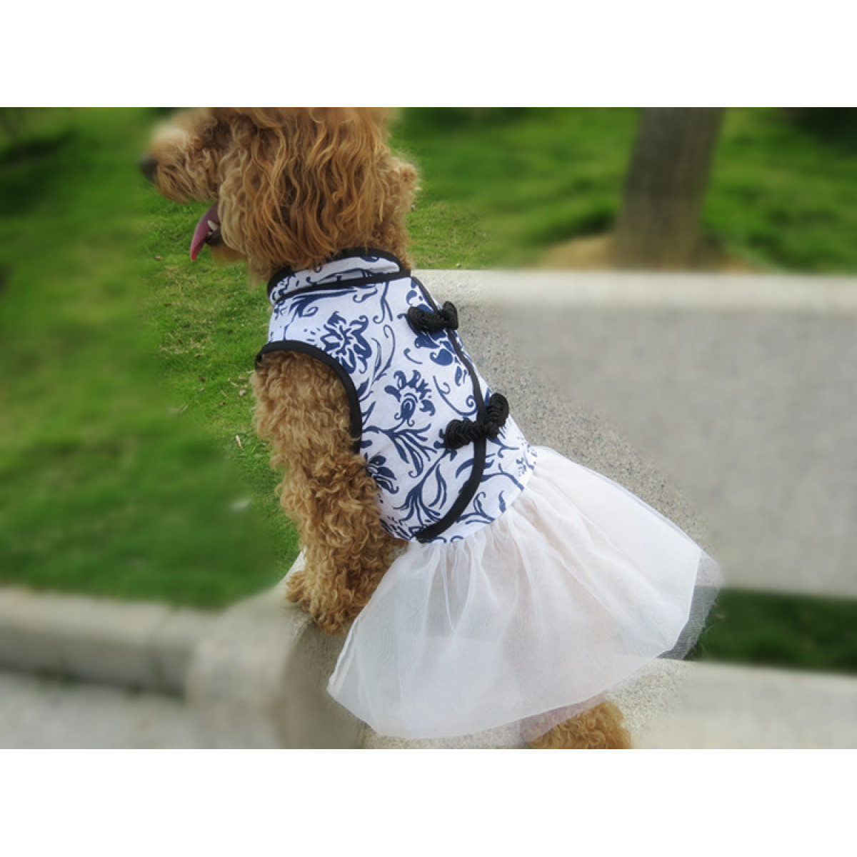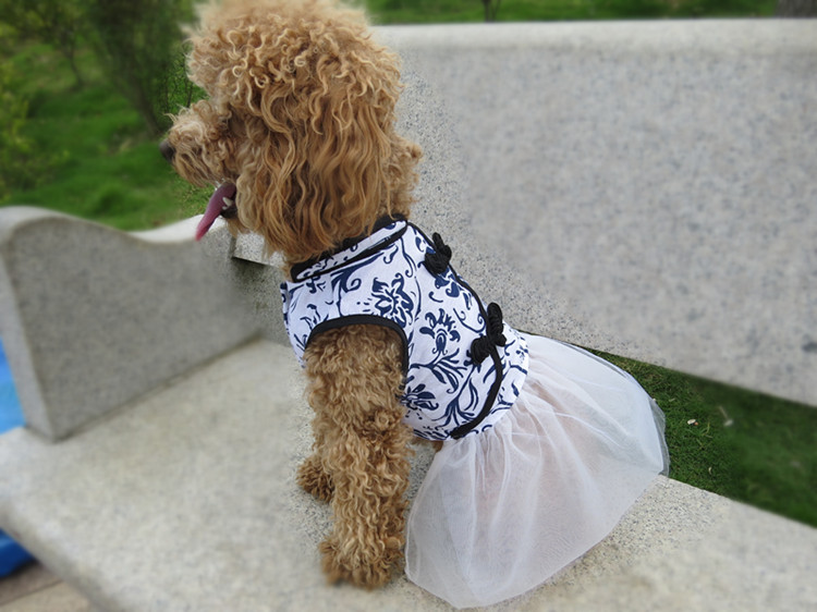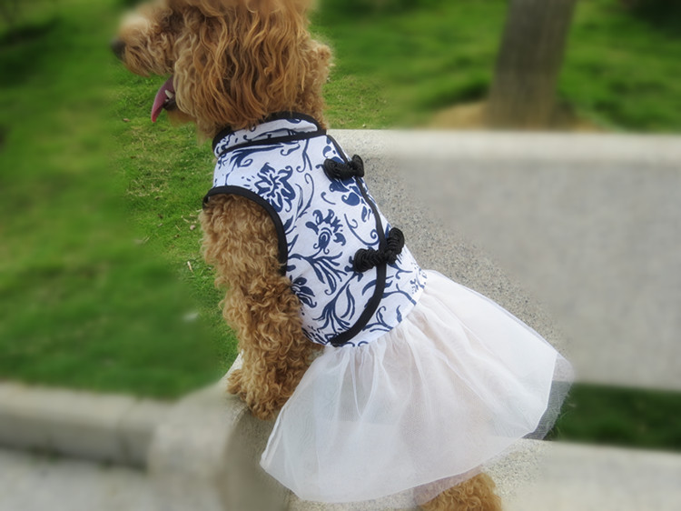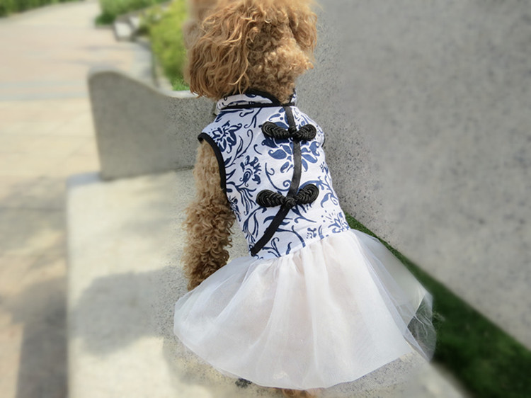 Pet Spring And Summer New Dog Clothes Cotton And Linen Blue And White Porcelain Cheongsam Skirt