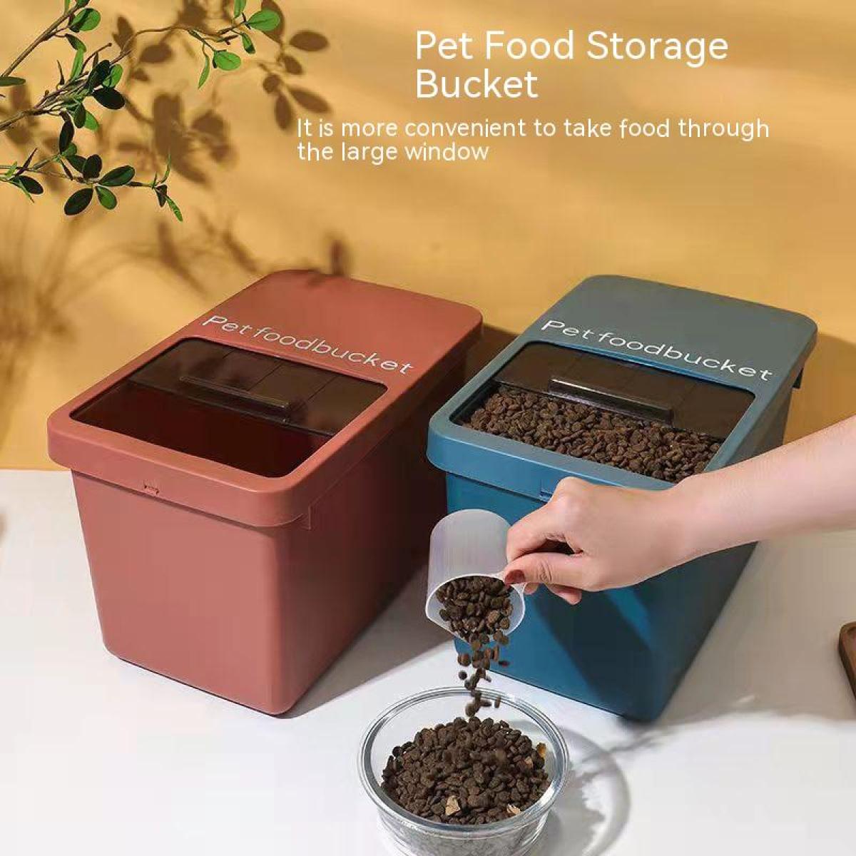 Color: red new style brown pet food bucket, cloudy blue pet food bucket