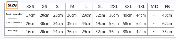 Size:Pet S, Pet M, Pet L, Pet XL, Pet XXL, Pet 3xL, Pet 4XL