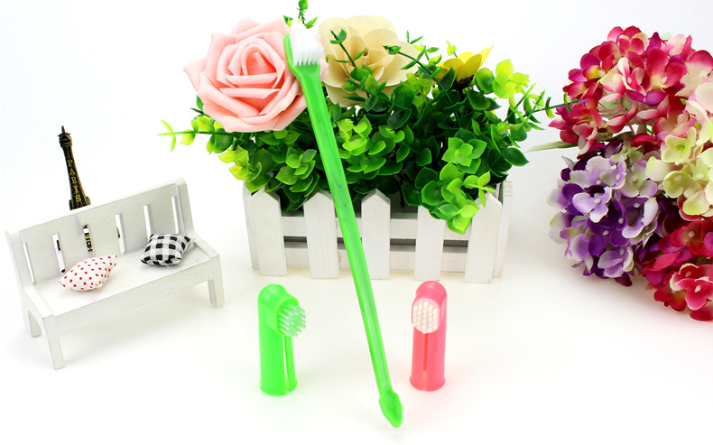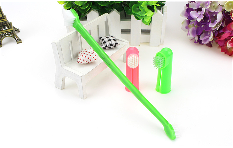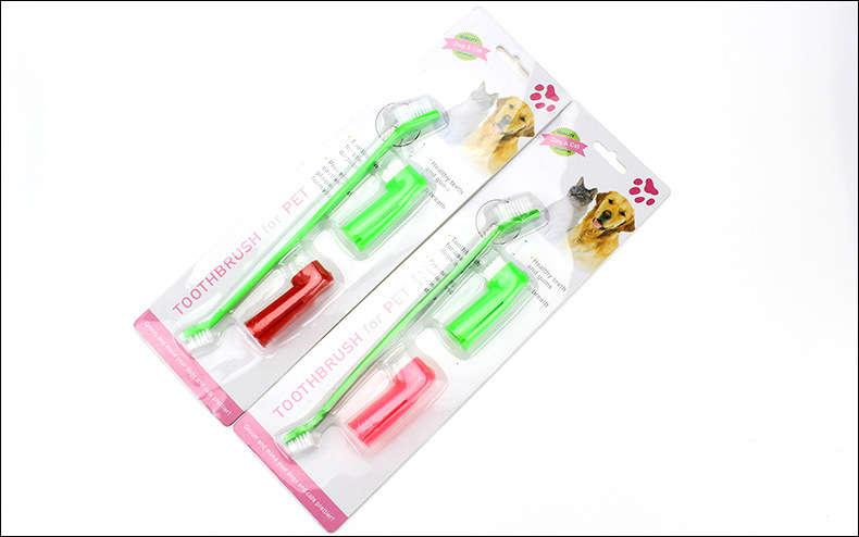 [Product introduction]: Three-piece pet toothbrush set, including one dual-head pet toothbrush and two pet finger brushes. The big head brushes the front teeth and the small head brushes the back teeth, specially designed for pets. Finger toothbrushes-one is a latex massage head and the other is a brush design. Consistently brushing your dog's teeth can effectively prevent dental calculus and gingivitis, and can eliminate bad breath!