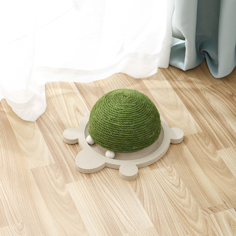 Color: green tortoise cat catching the ball, pink tortoise cat catching the ball, wooden tortoise rolling ball