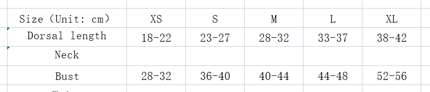 Size: XS- about 2-3 kg, S- about 4-6 kg, M- about 7-8 kg, L- about 10-12 kg, XL- about 14-18 kg.