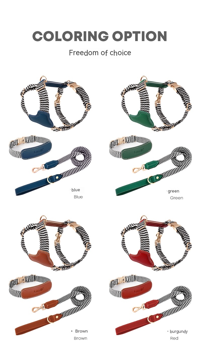 Color classification: collar-Brown, collar-red, collar-blue, collar-Green, chest strap-Brown, chest strap-red, chest strap-blue, chest strap-Green, hand holding rope-Brown, hand holding rope-red, hand holding rope-blue, hand holding rope-Green