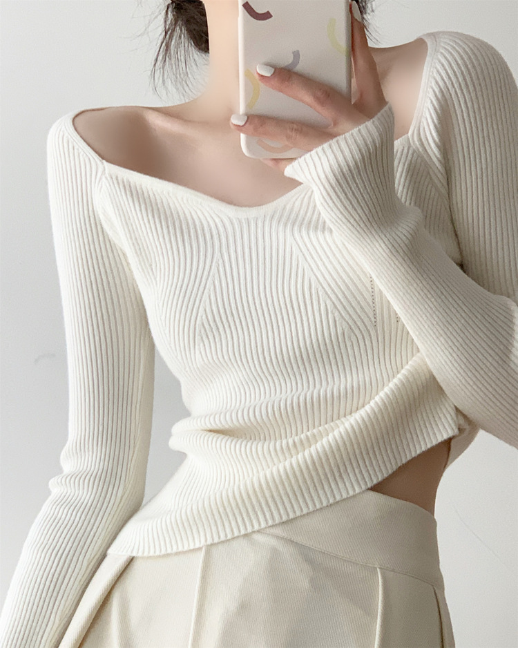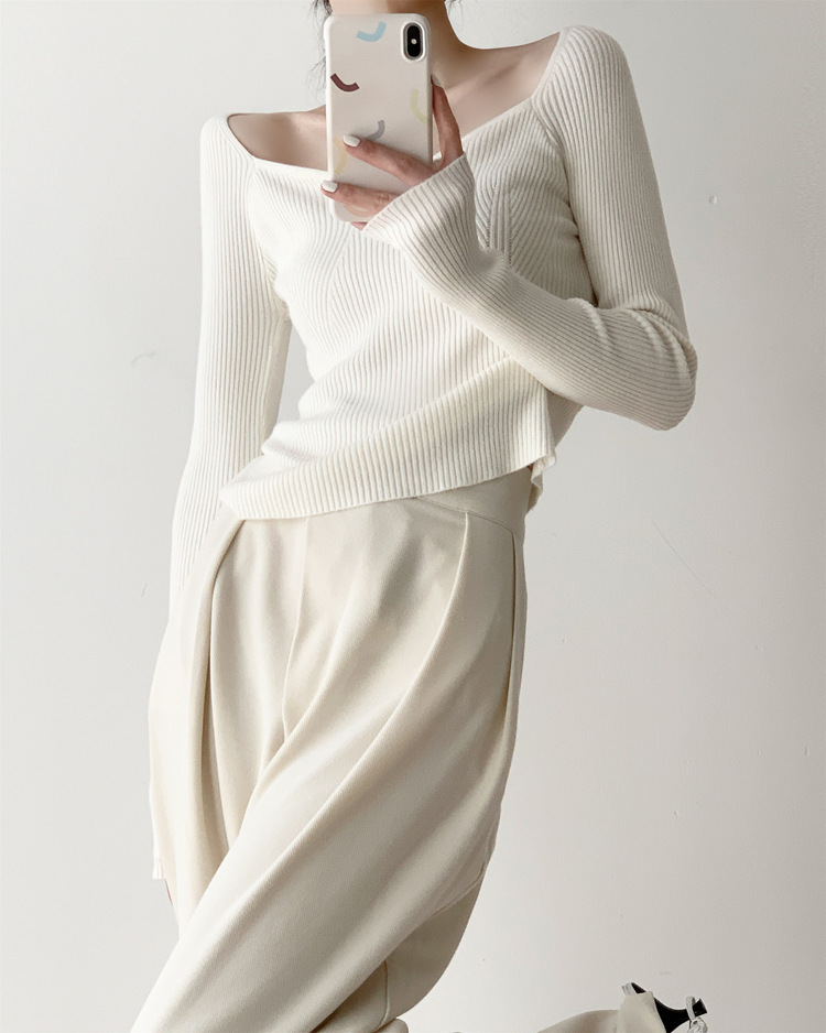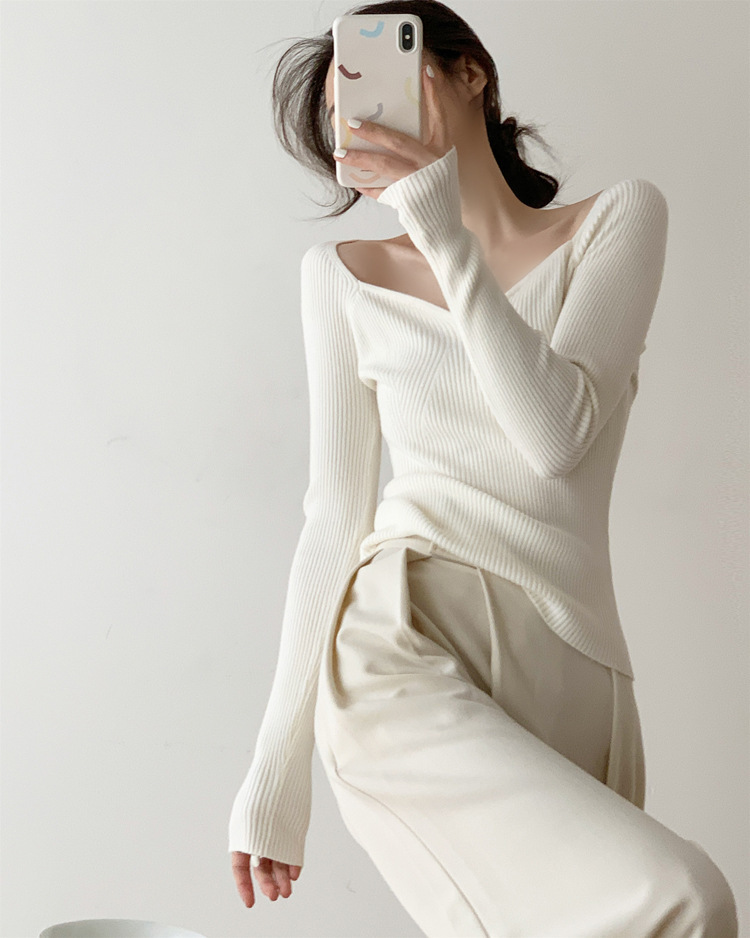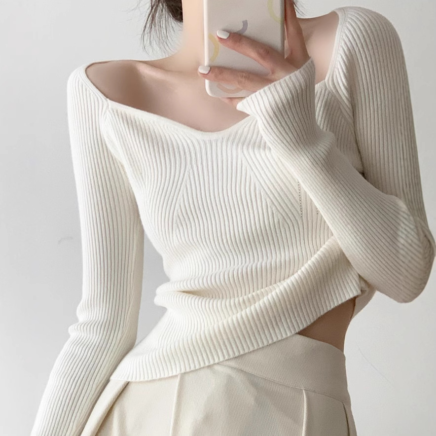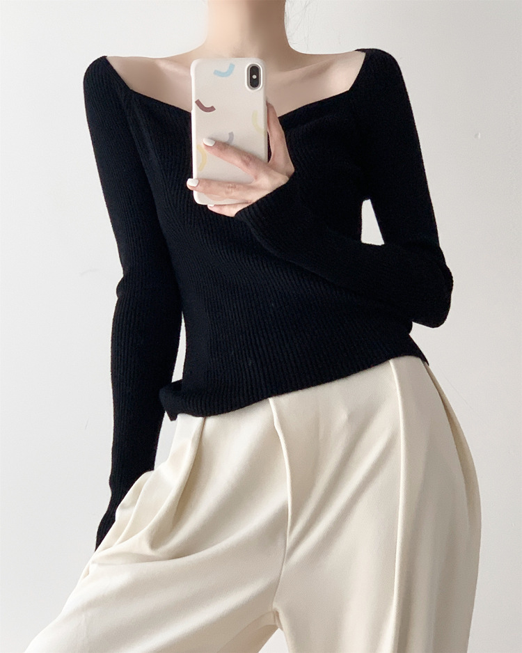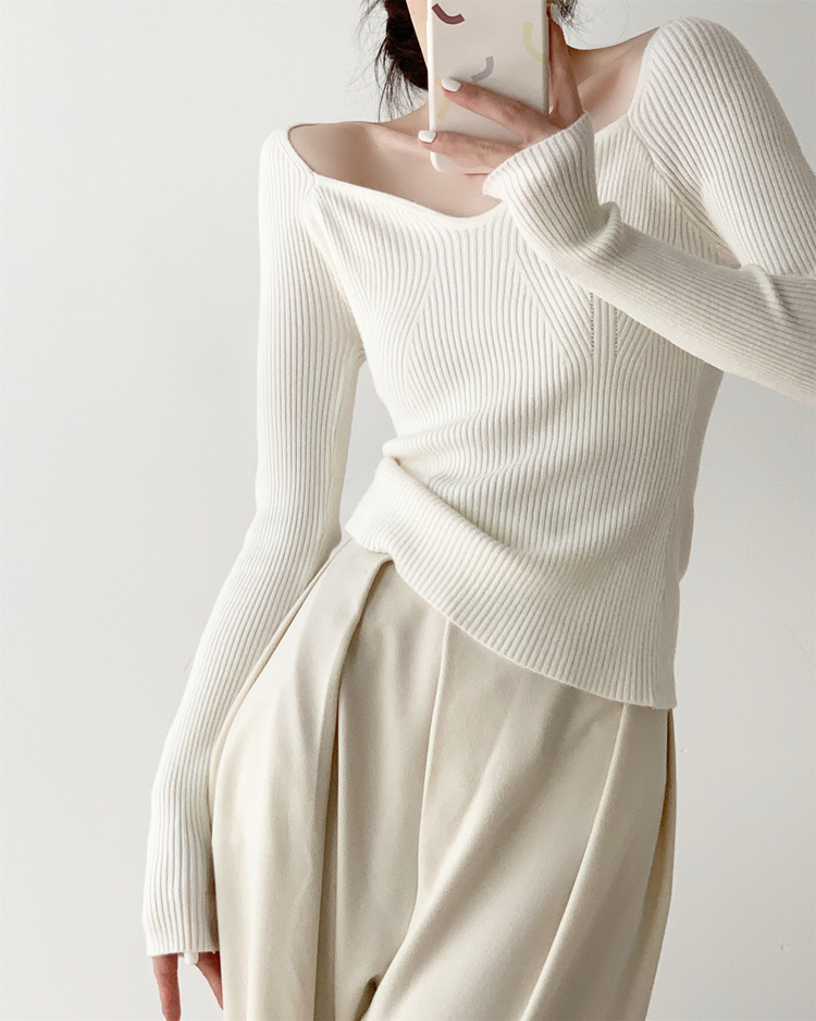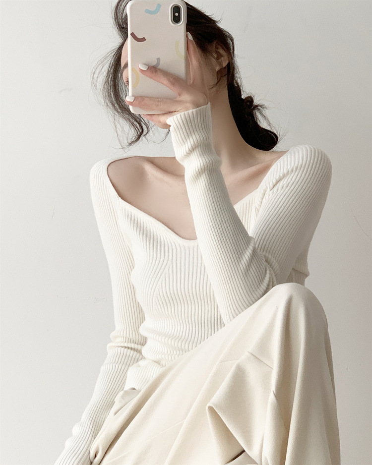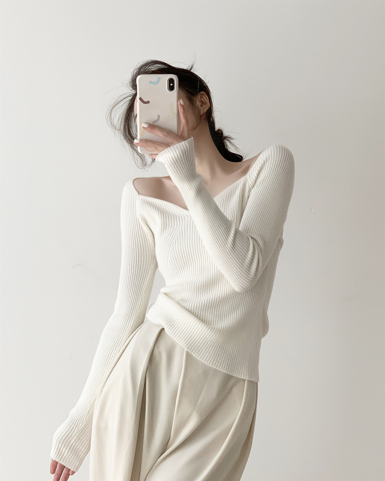 Petal Collar Knitted Off-shoulder Inner Bottoming Sweater