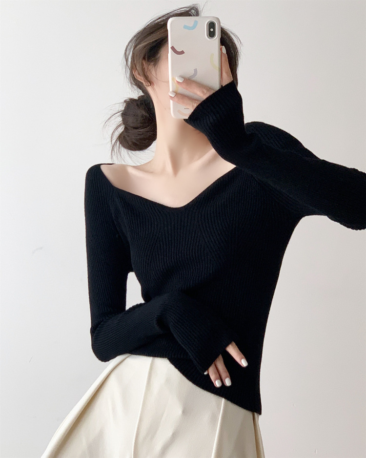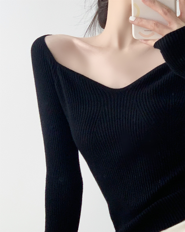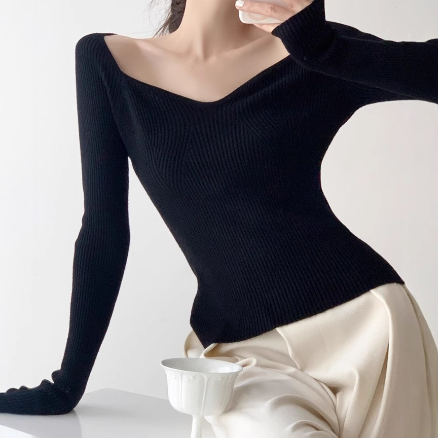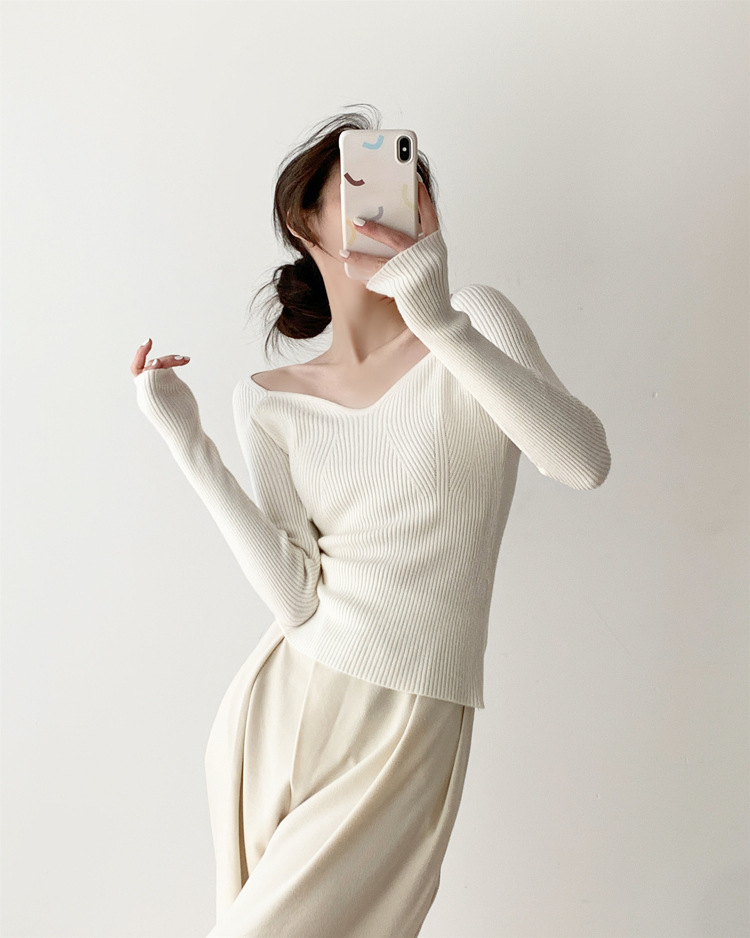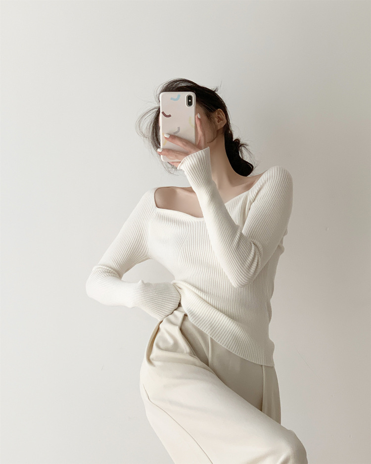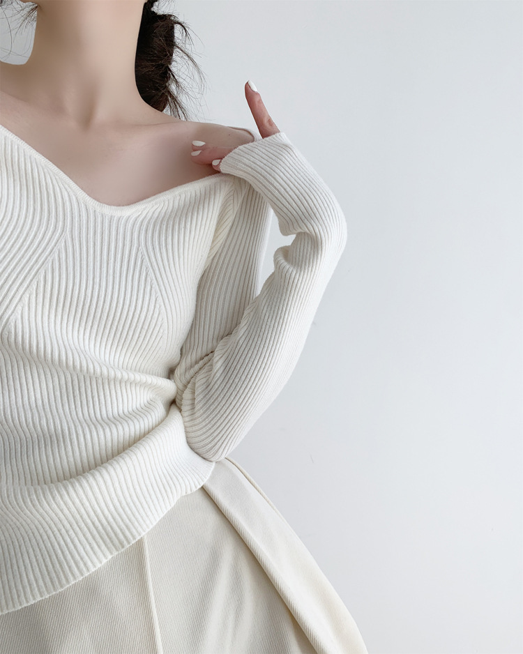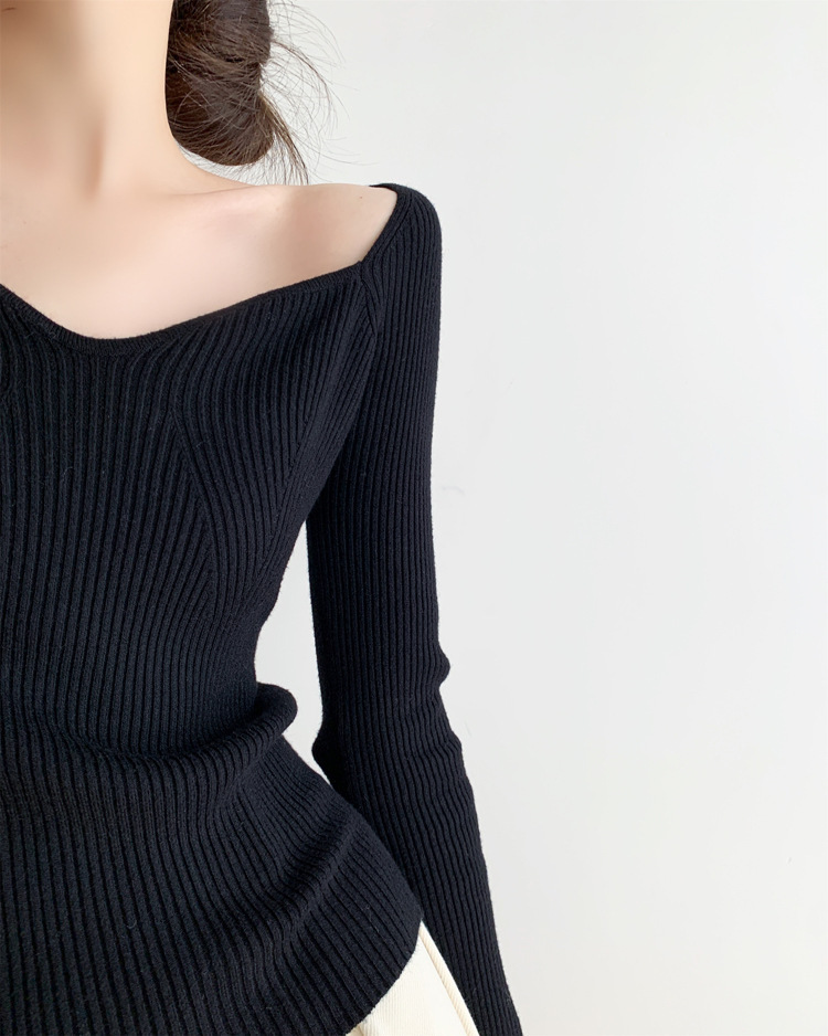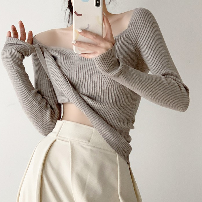 Petal Collar Knitted Off-shoulder Inner Bottoming Sweater
