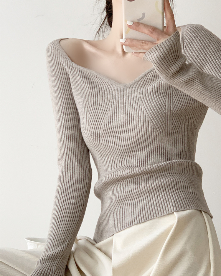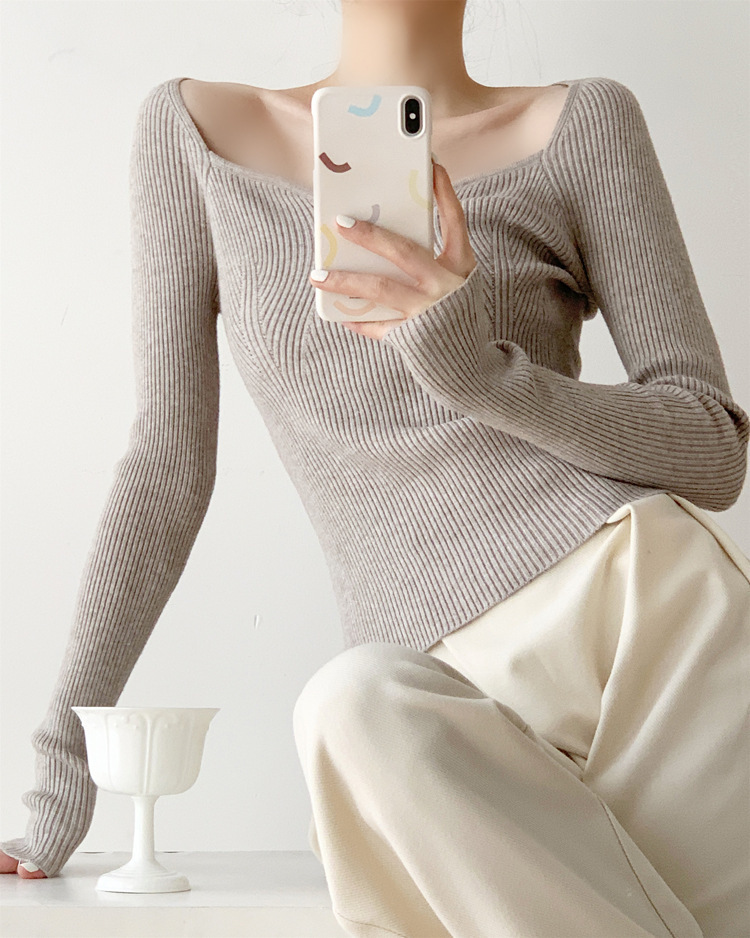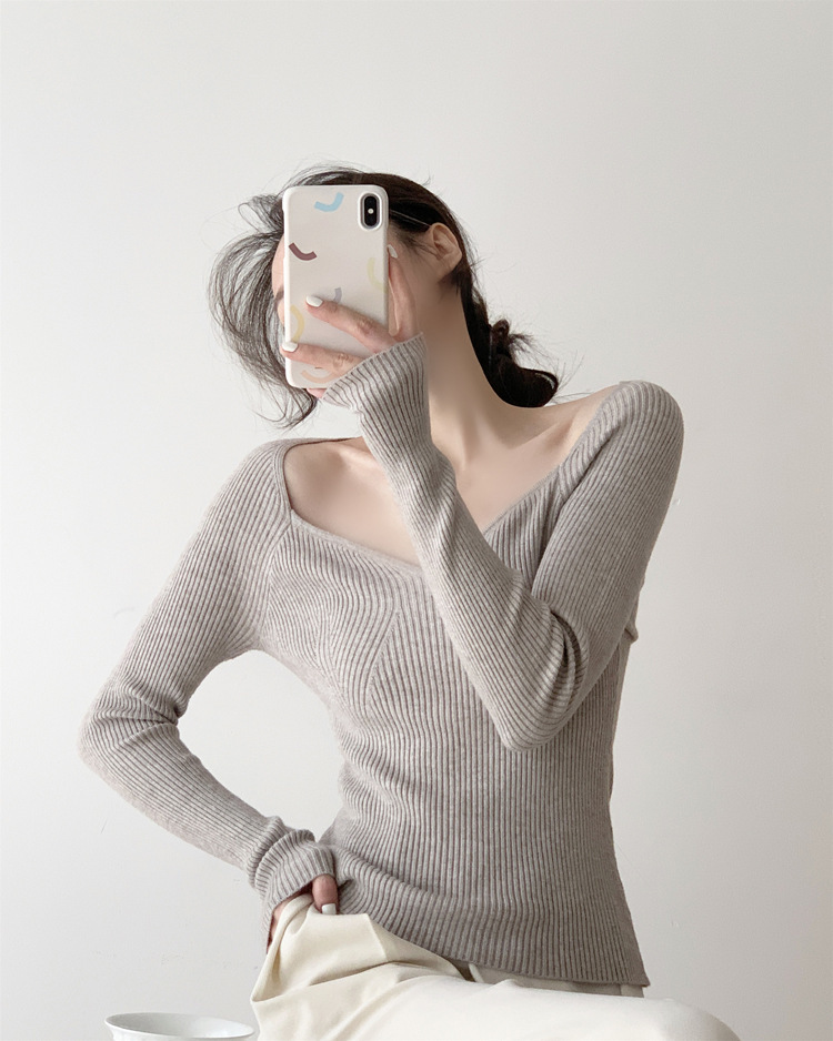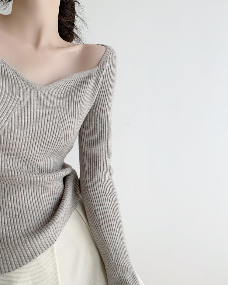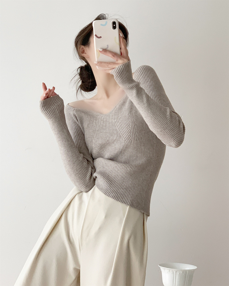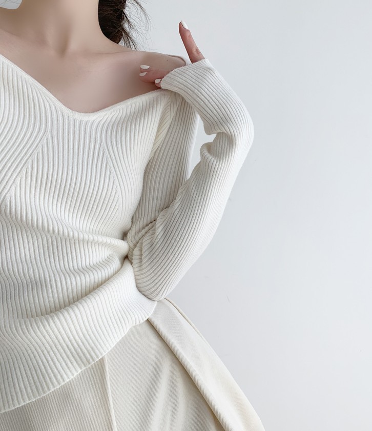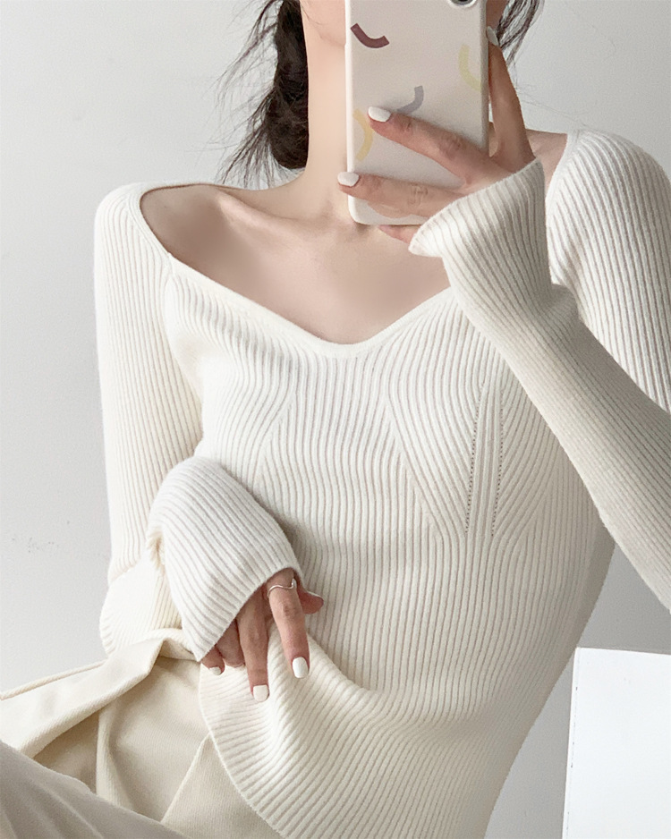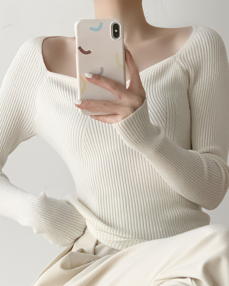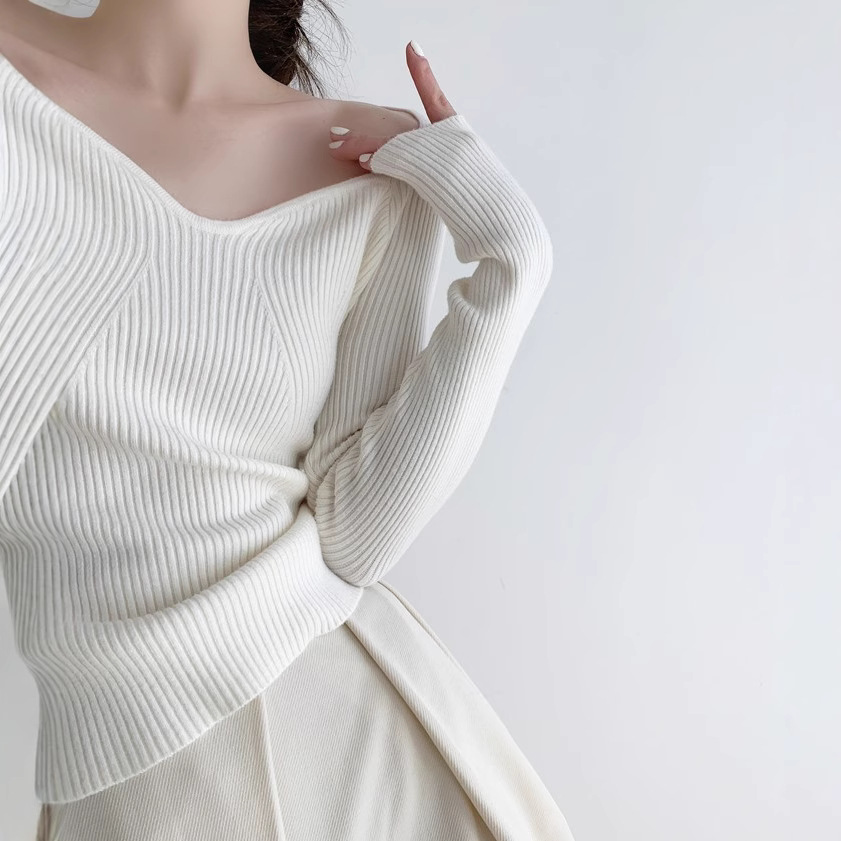 Petal Collar Knitted Off-shoulder Inner Bottoming Sweater