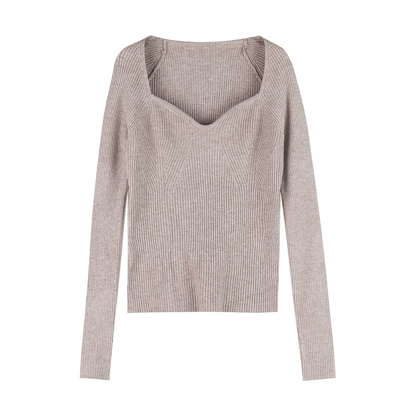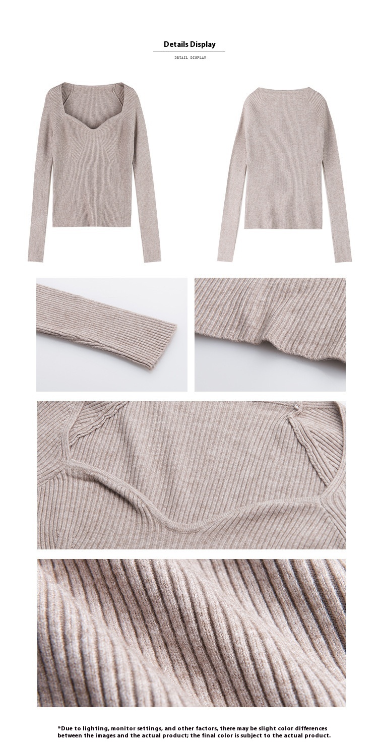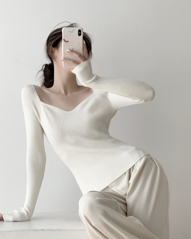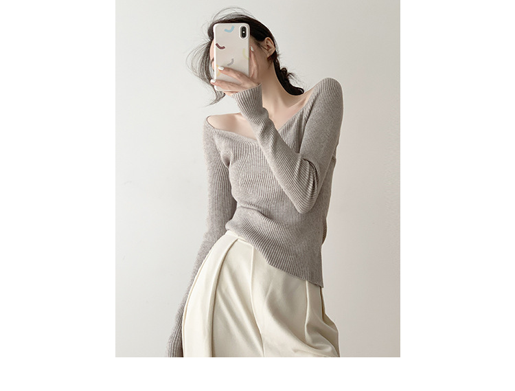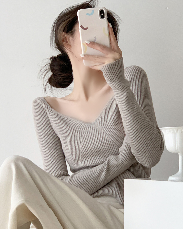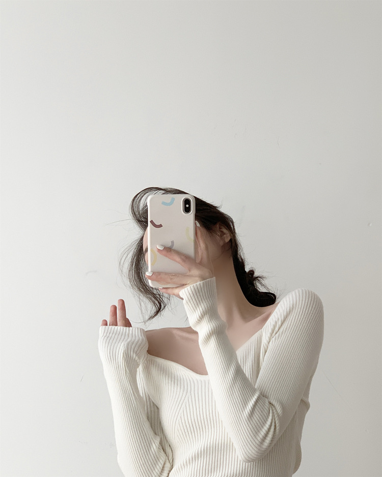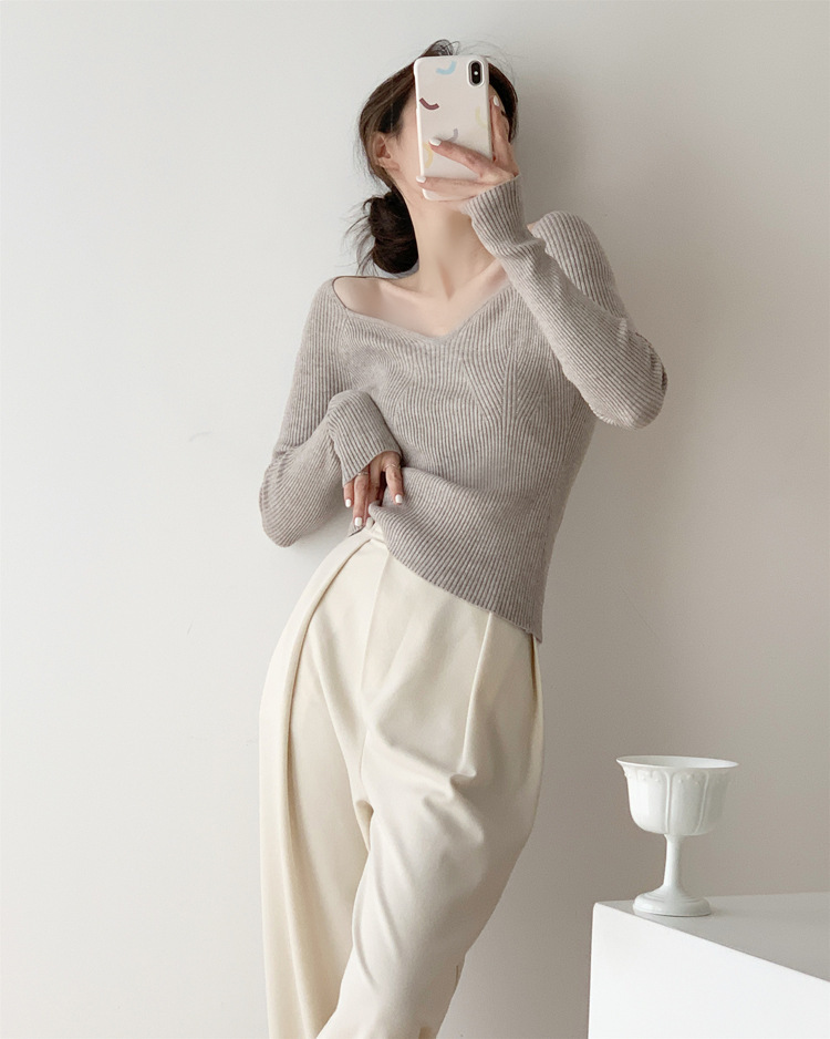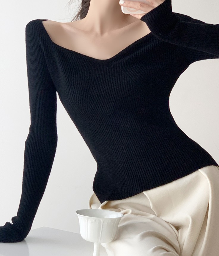 Petal Collar Knitted Off-shoulder Inner Bottoming Sweater