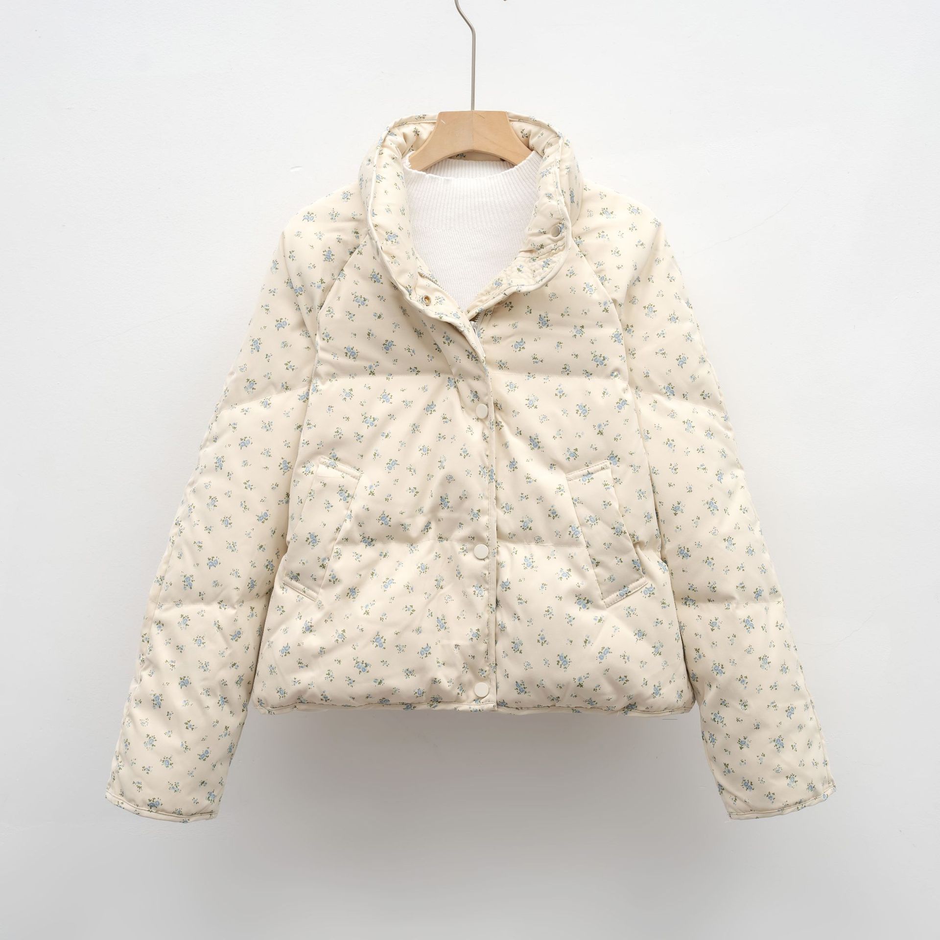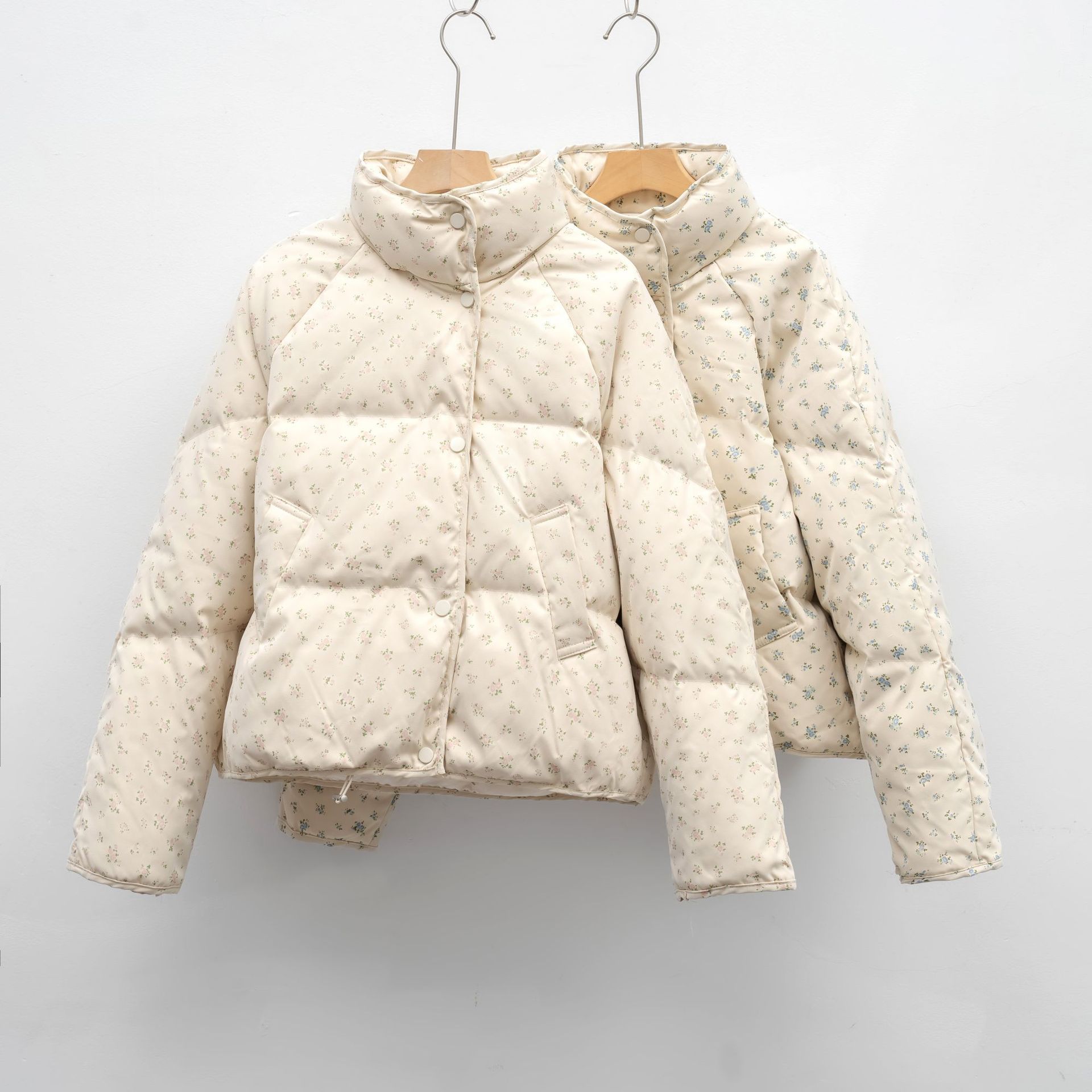 Petite White Duck Down Jacket Short Floral Women