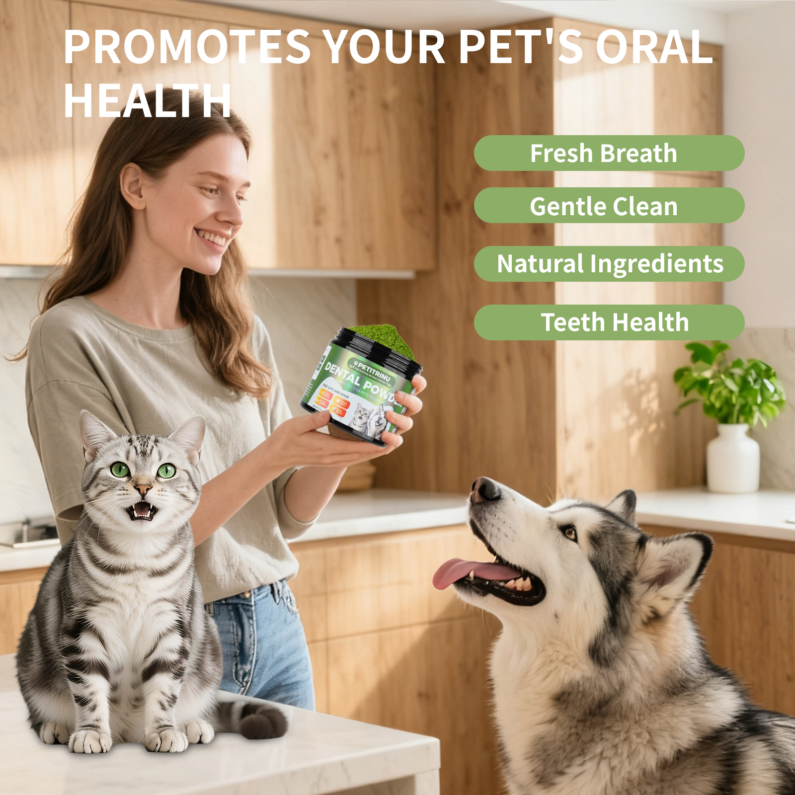 PETITRINU Natural Dental Powder For Cats And Dogs, Fresh Breath Gentle Clean Teeth Health Pet Oral Care Powder 150g