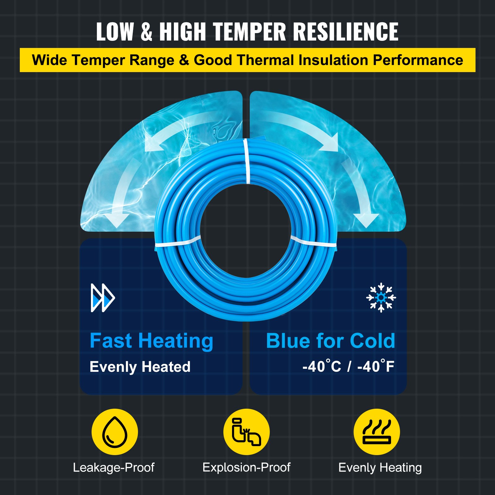 【SUPERB SEALING DESIGN】- Compatible water temperature: -40℃ to 95℃/-40℉ to 203℉. This non-broken 1" PEX tube can tackle different weather circumstances, no matter the high or low temperature, to ensure the integrity and secure use for longer life expectancy.