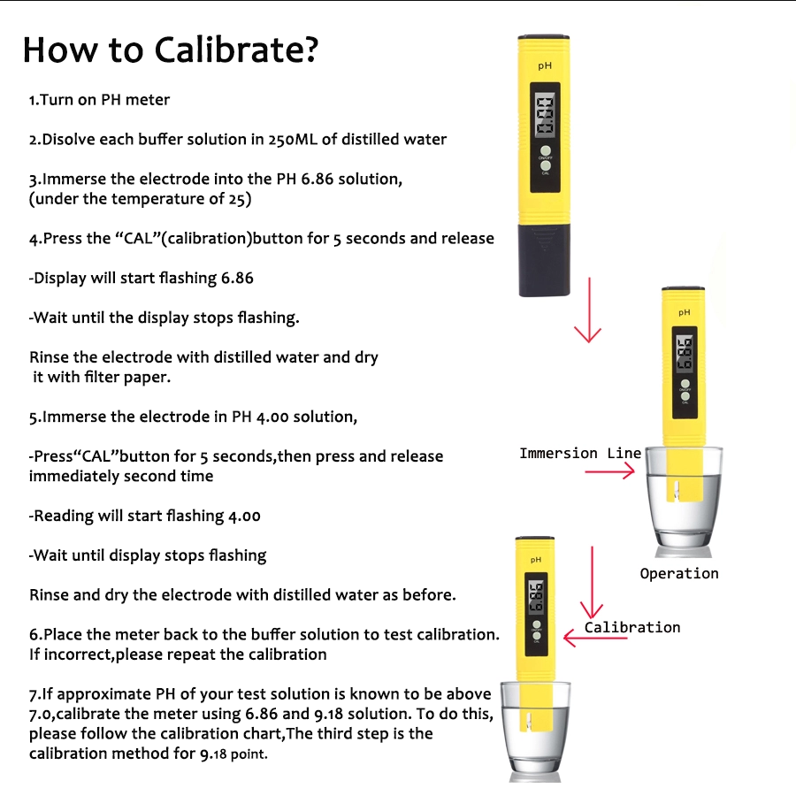 5. Repeat the above steps with 4.01 pH buffer powder and 9.18 pH buffer powder.