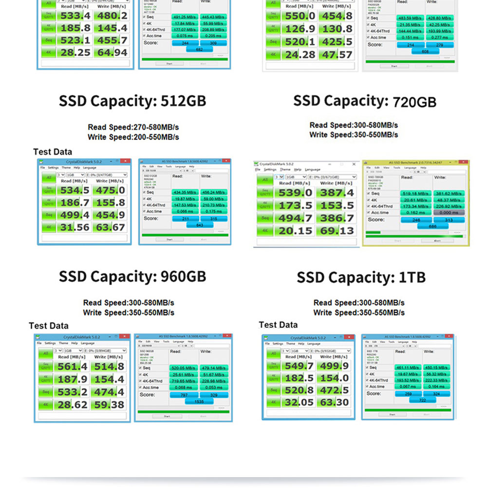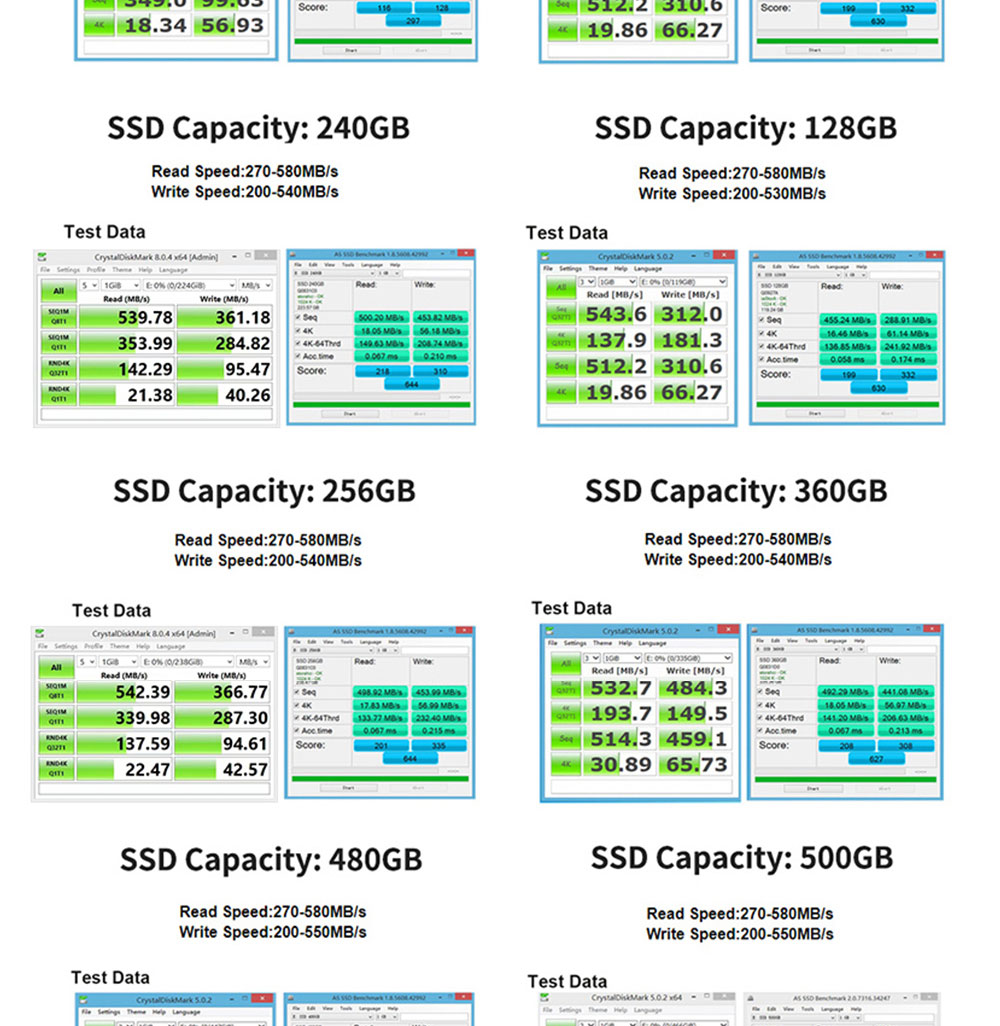 Read data transfer rate: 150-550(MB/s)
