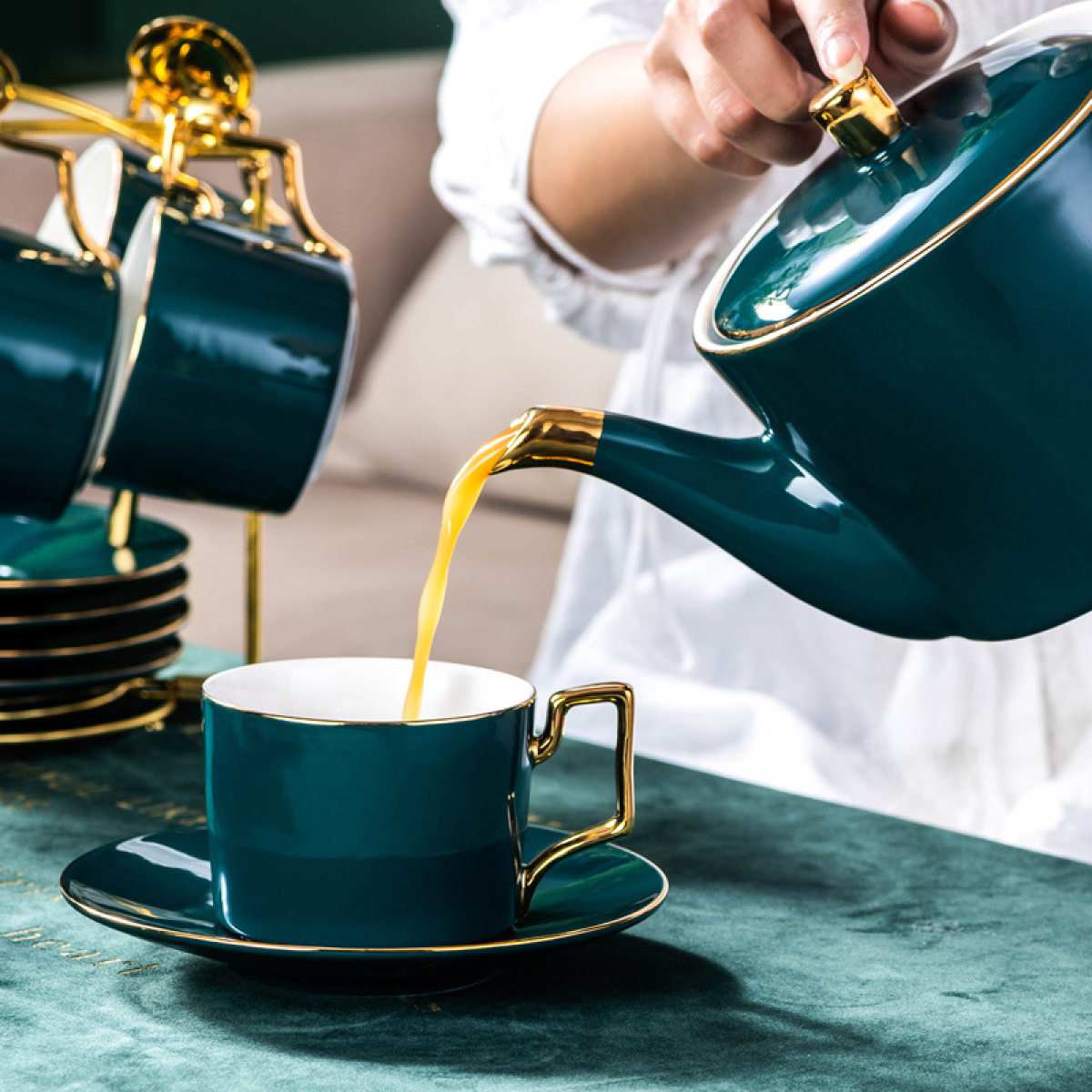Color: single cup and saucer (with, spoon), 2 cups and saucers (with, spoon and shelf), 4 cups and saucers (with, spoon and shelf), 6 cups and saucers (with, spoon and shelf), Wild Jungle Coffee Pot