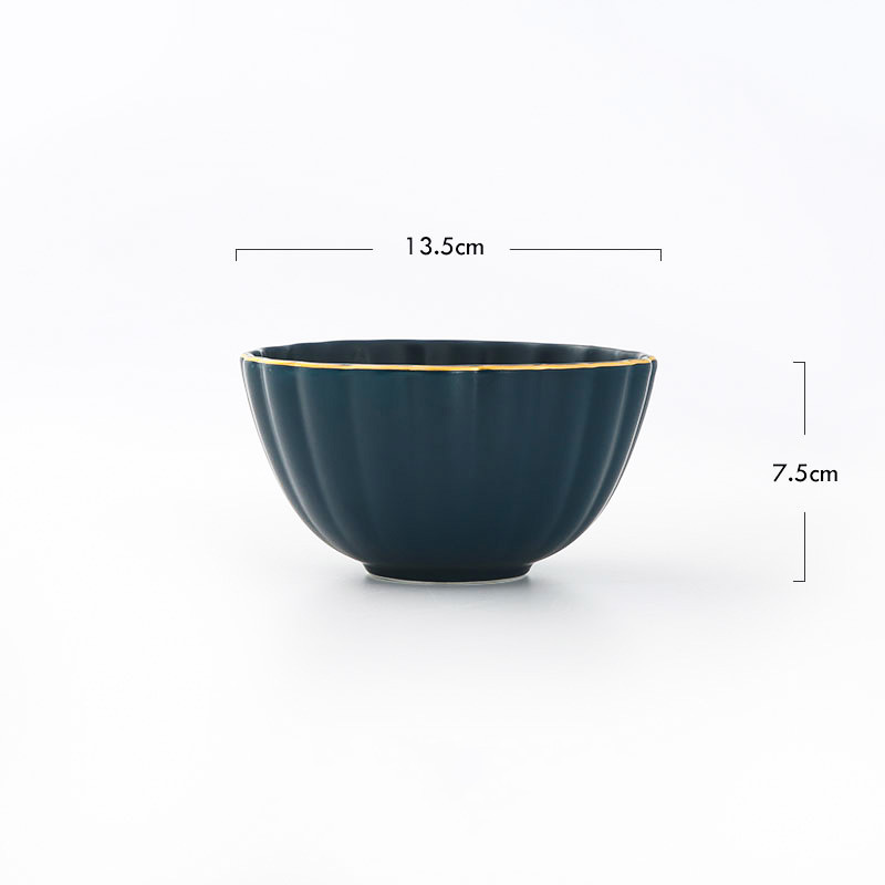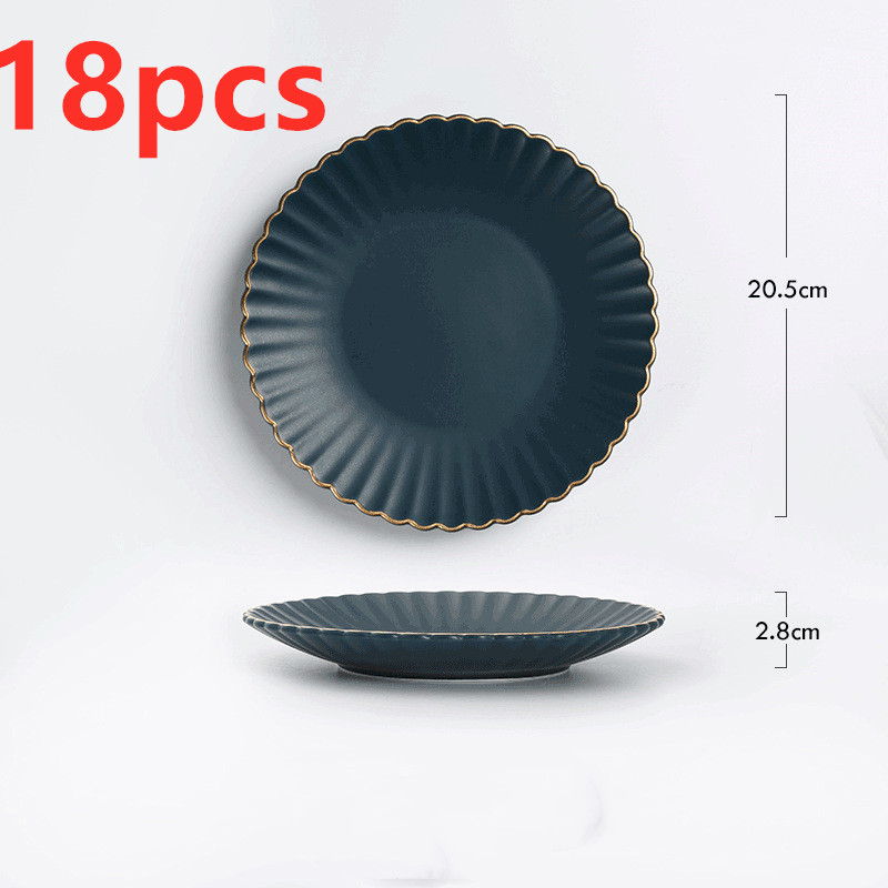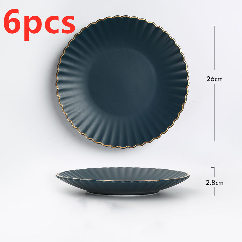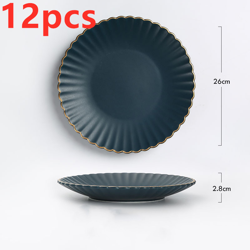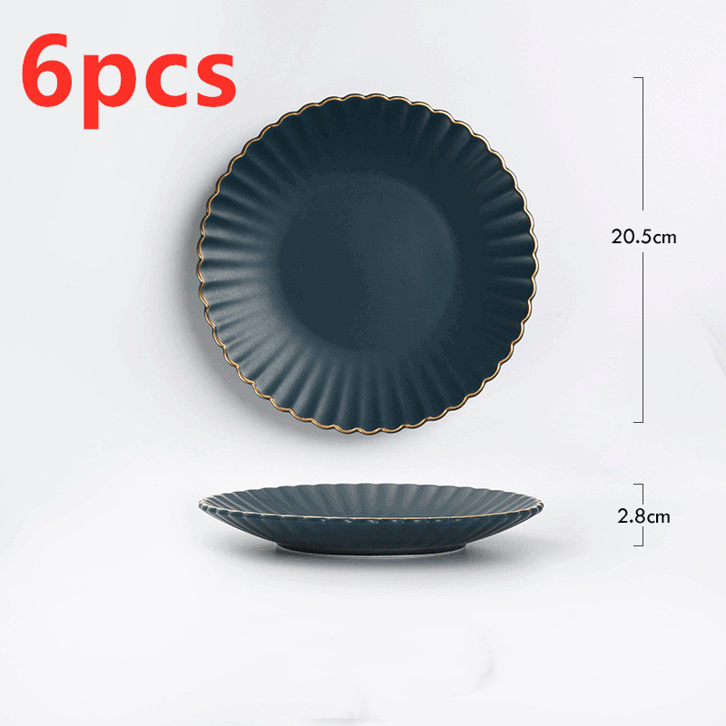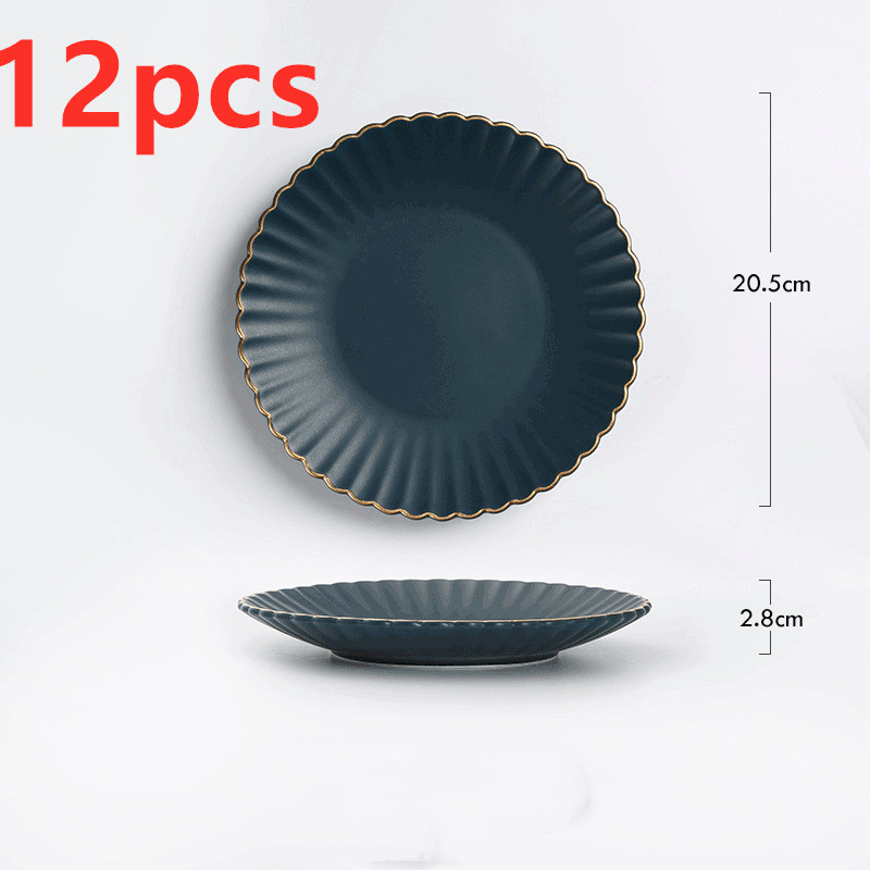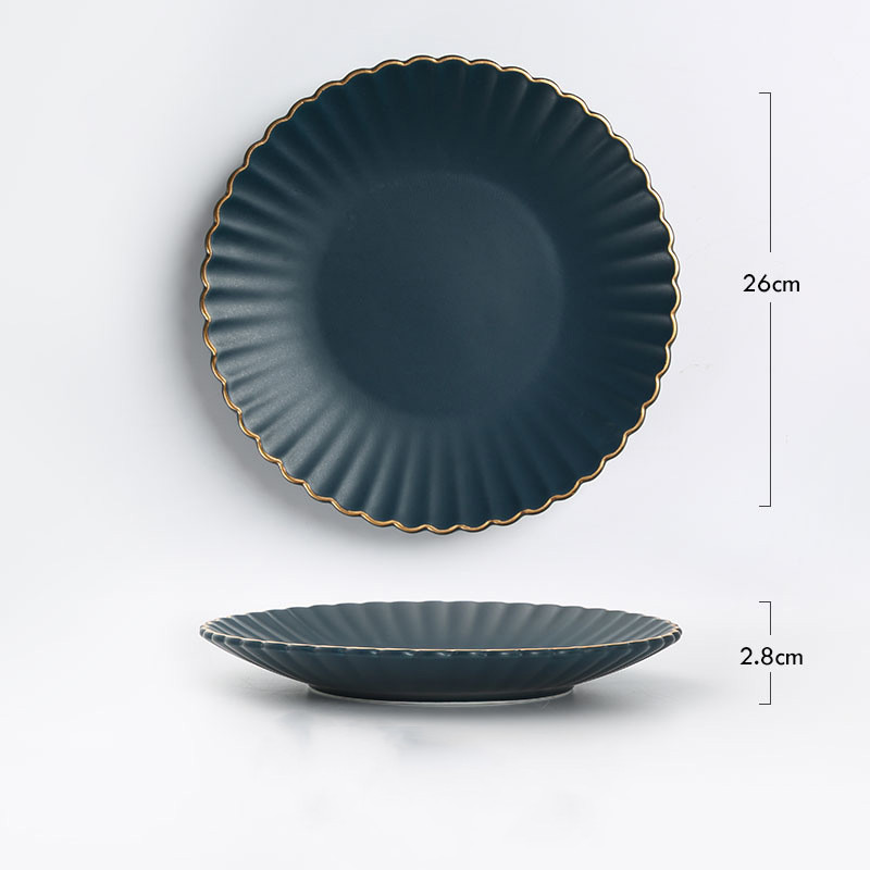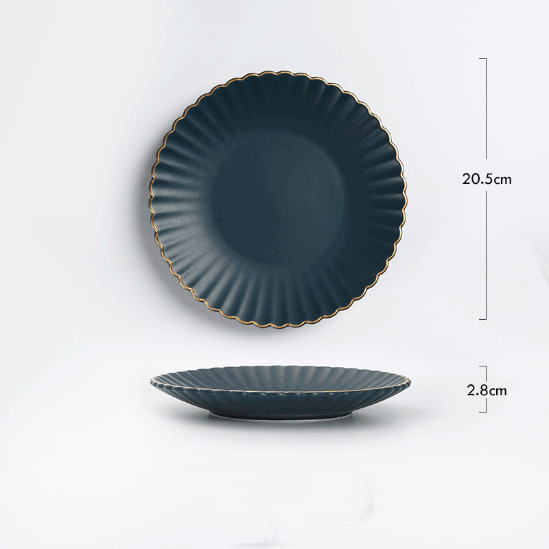 E: 8-inch round plate with gold rim sapphire blue,