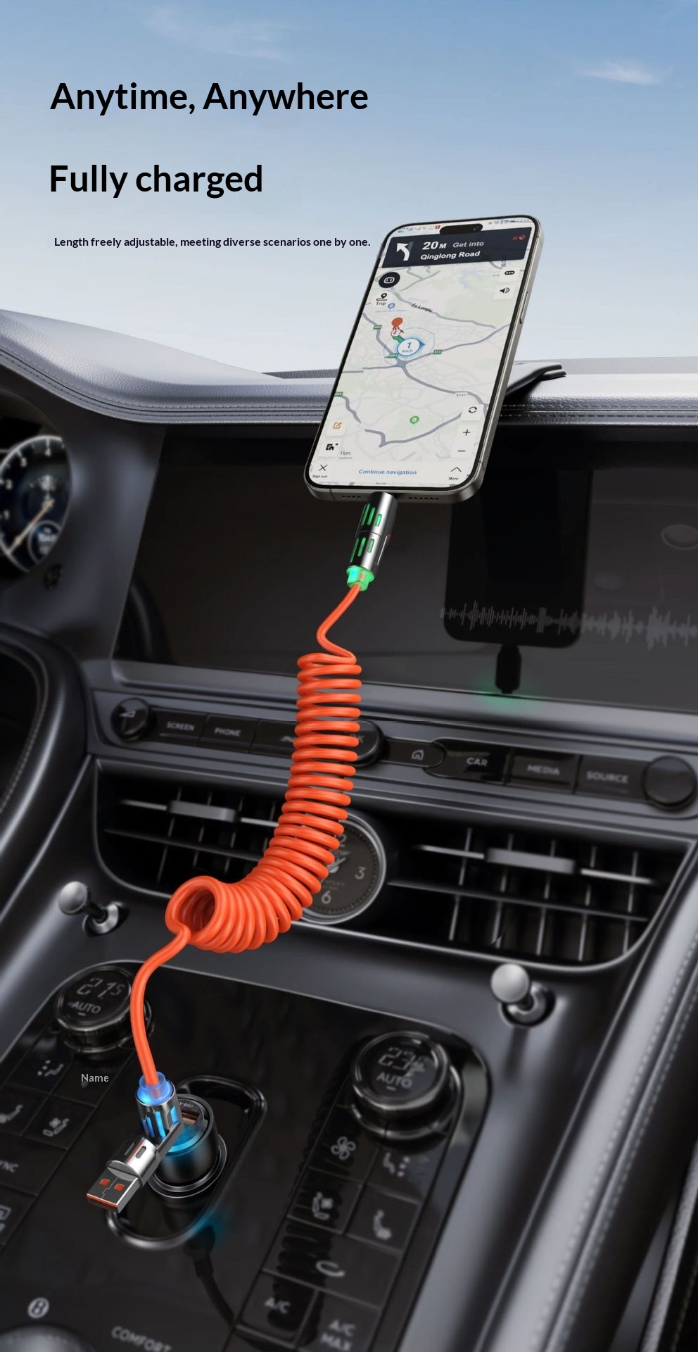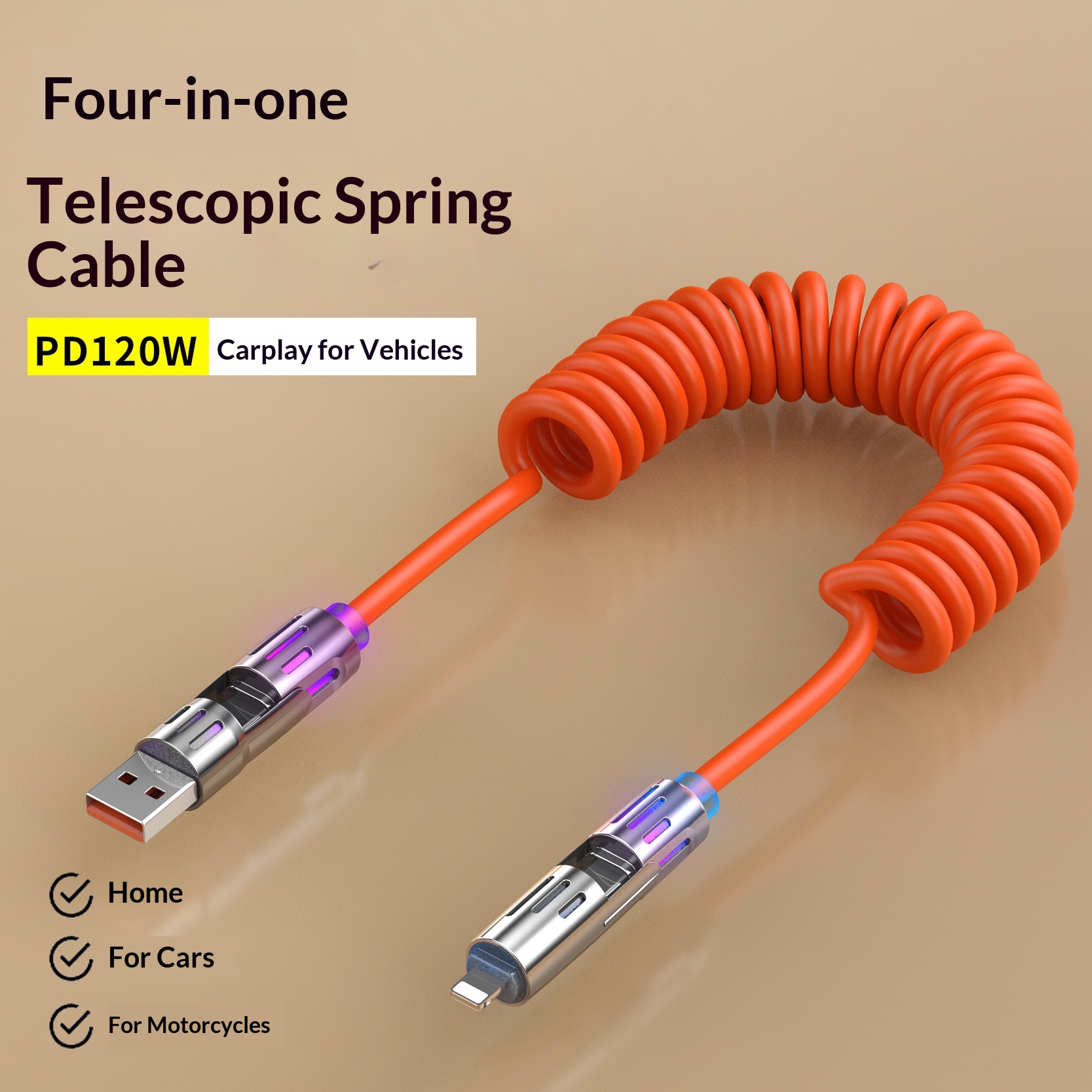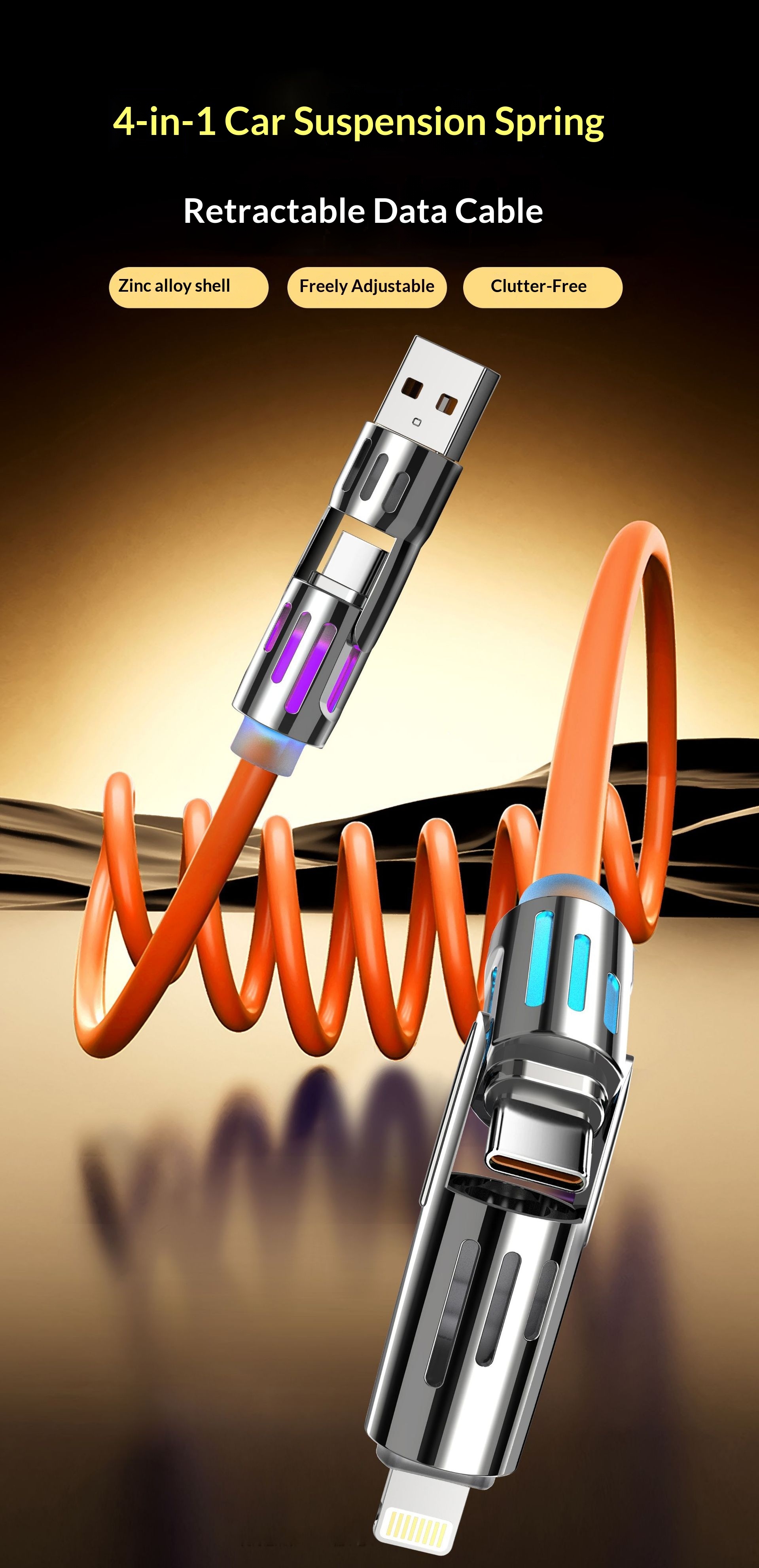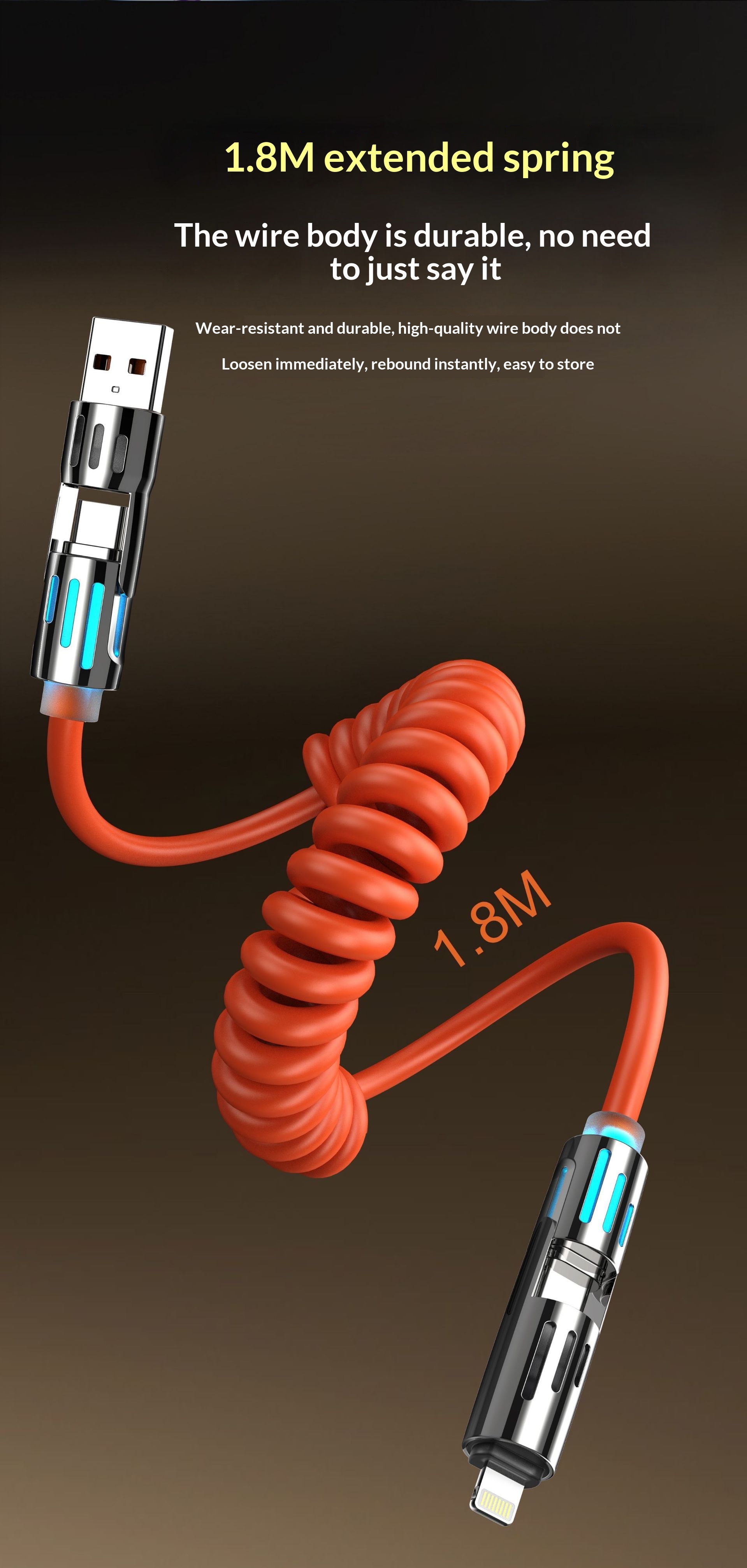 Phone Cable Spring Light Bar 4-in-1 65W Data Cable
