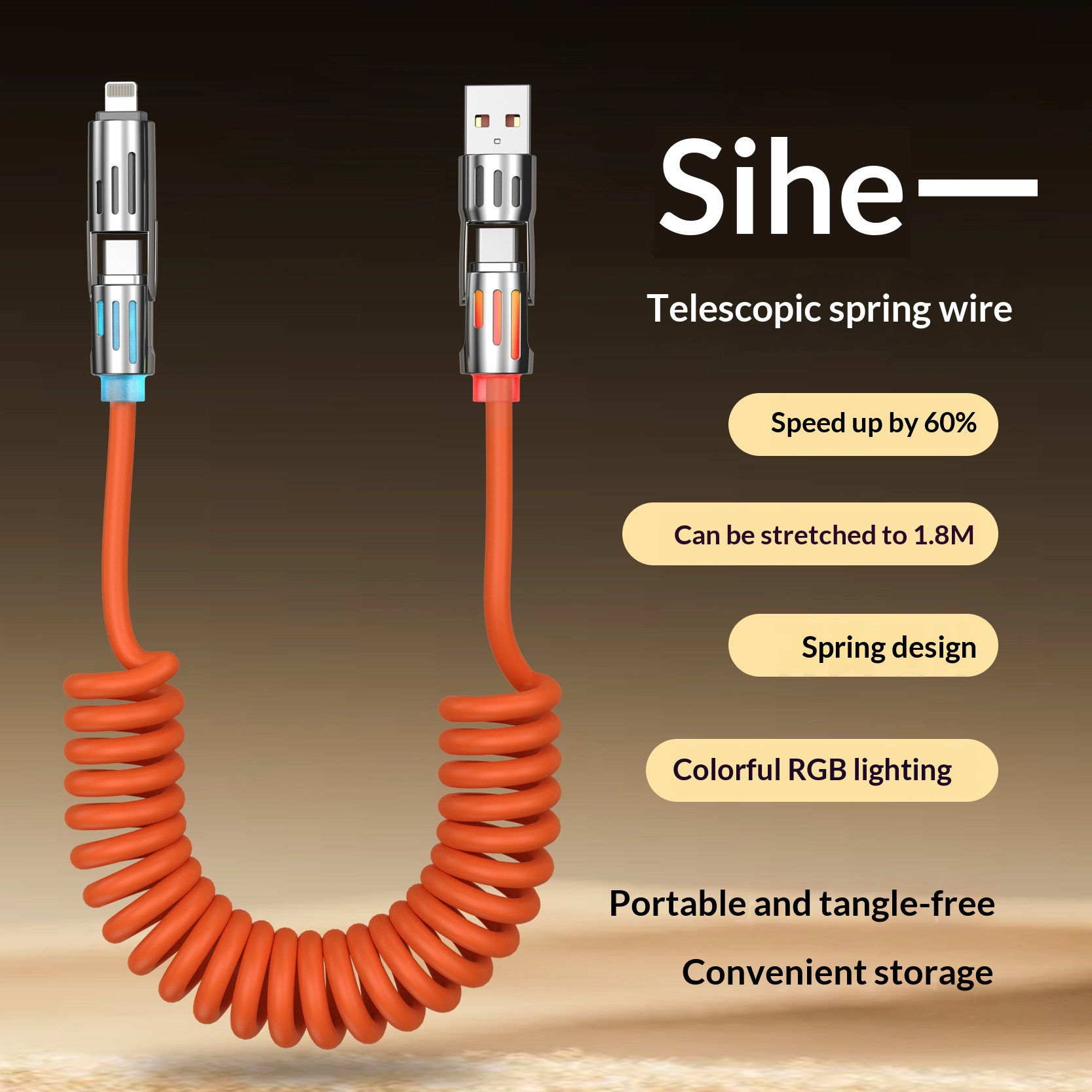 Colors: Spring-style 4-in-1, 1.8m, Black; Spring-style 4-in-1, 1.8m, White; Spring-style 4-in-1, 1.8m, Orange; Spring-style 4-in-1, 1.8m, Blue; Spring-style 4-in-1, 1.8m, Purple