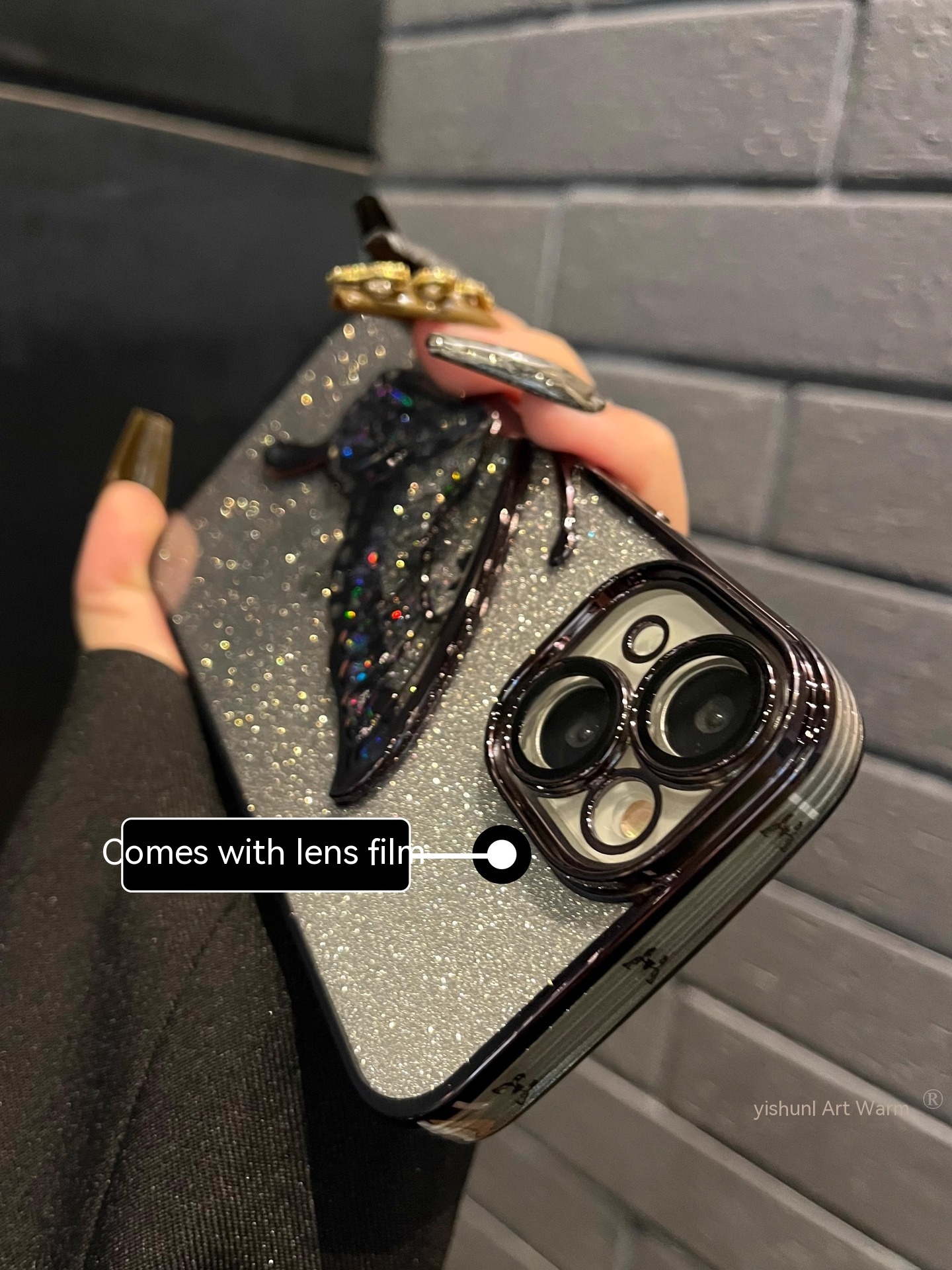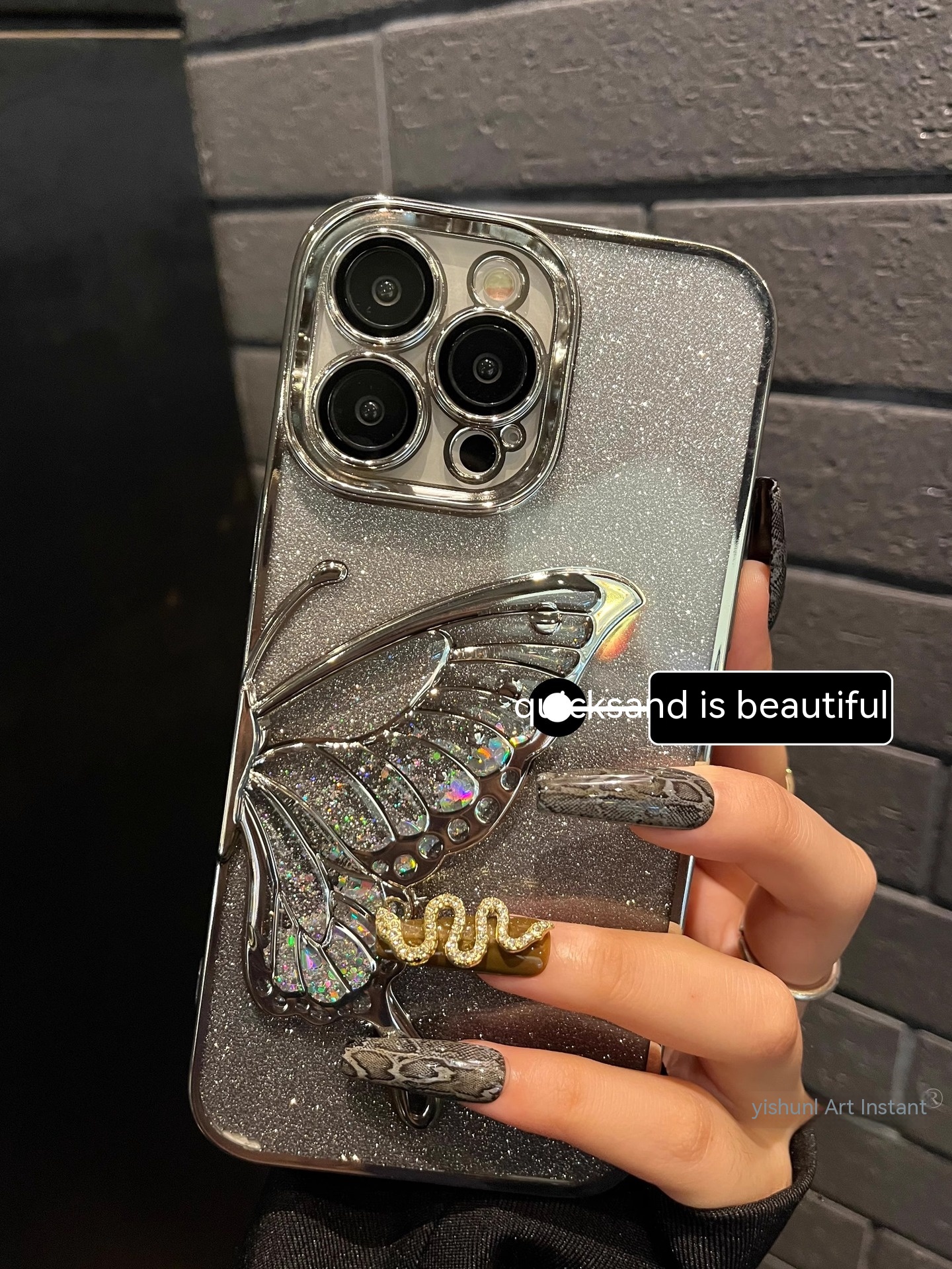 Color: Silver quicksand butterfly-comes with lens protector, Green quicksand butterfly-comes with lens protector, purple quicksand butterfly-comes with lens protector, pink quicksand butterfly-comes with lens protector, black quicksand butterfly-comes with lens protector