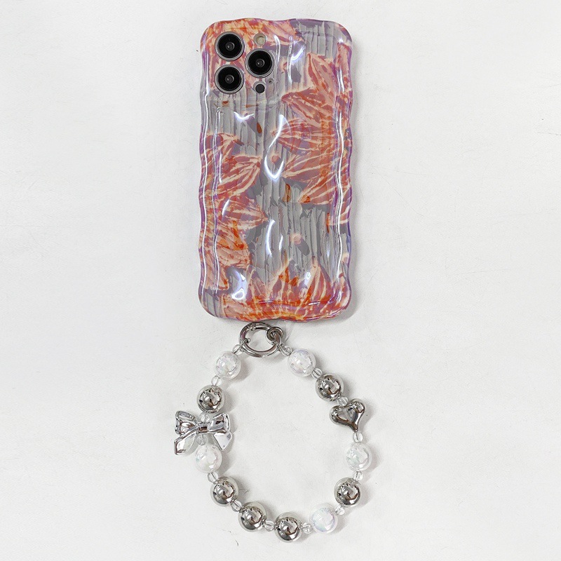 Color: Oil painting maca (blue)-Single shell, oil painting lotus (orange)-Single shell, oil painting maca (blue) bracelet, 3 oil painting lotus (orange) bracelet