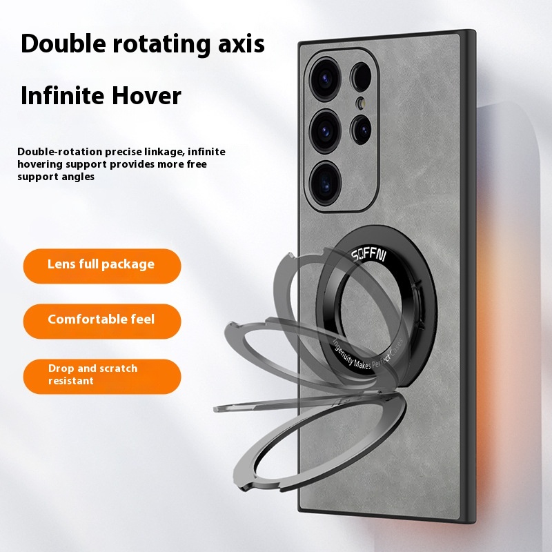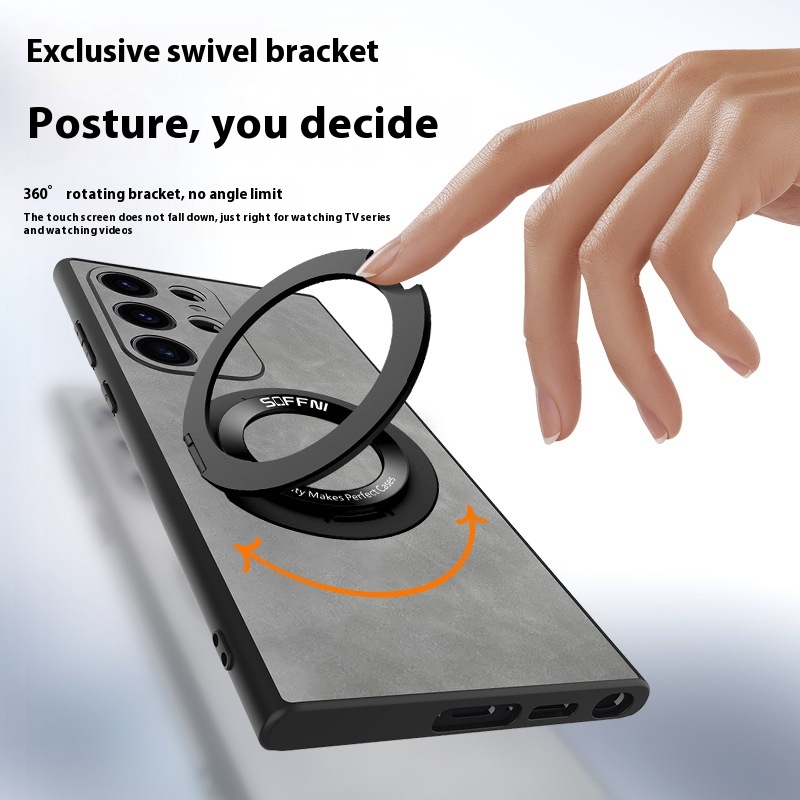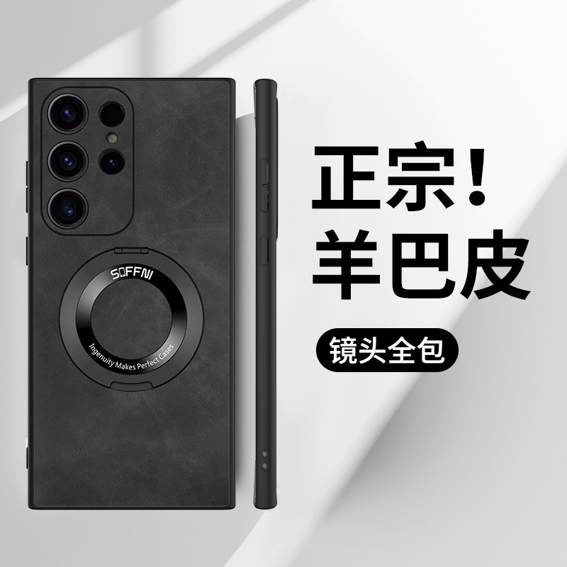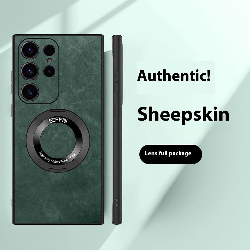 Phone Case Sheepskin Magnetic Suction Rotatable Ring Bracket Lens Protection