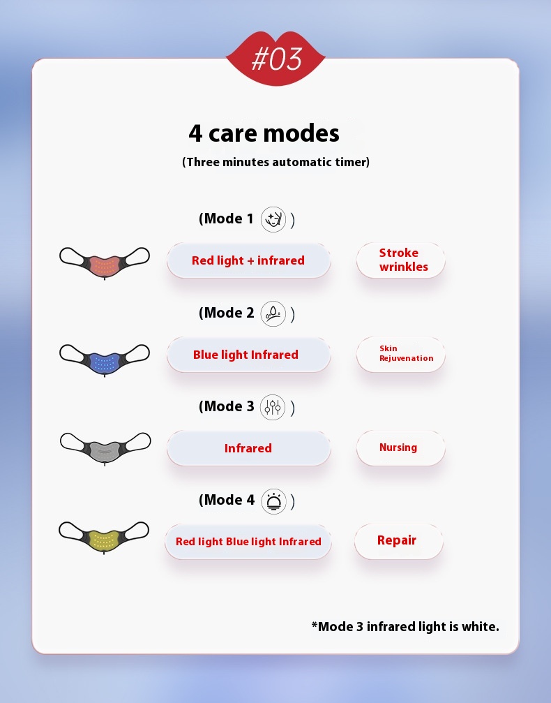 LED wavelength: red light 660UM, blue light 460UM, infrared 850UM