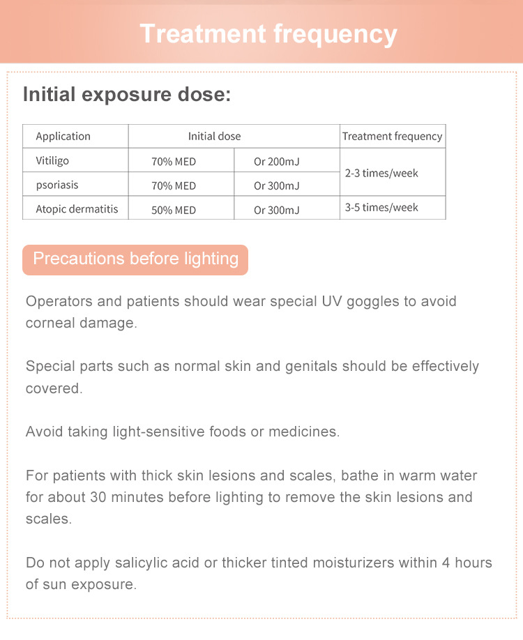 Indications: vitiligo/psoriasis/eczema/atopic dermatitis/pityriasis rosea