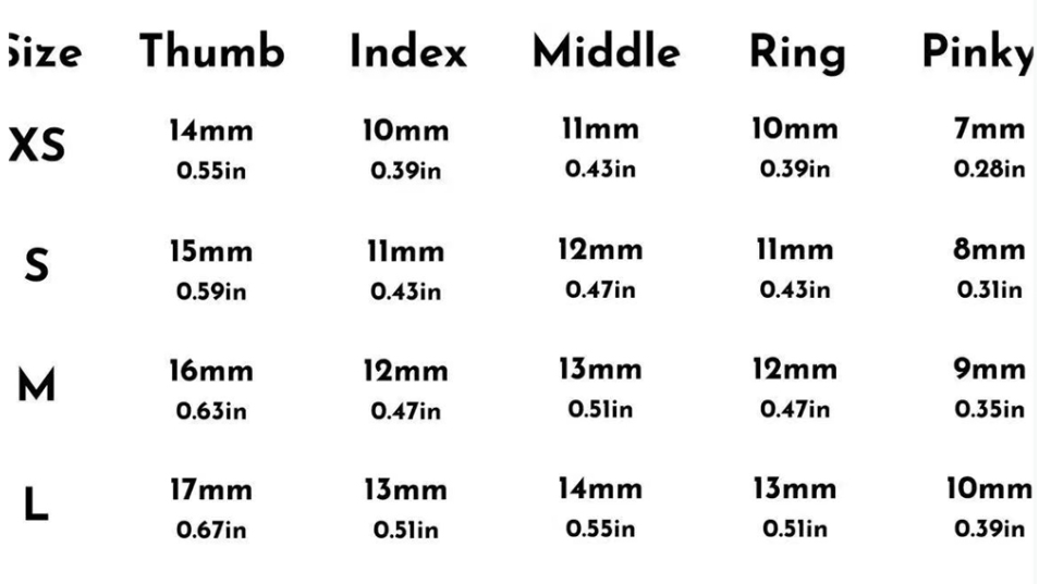 Specifications: Extra small XS, small S, medium M, large L