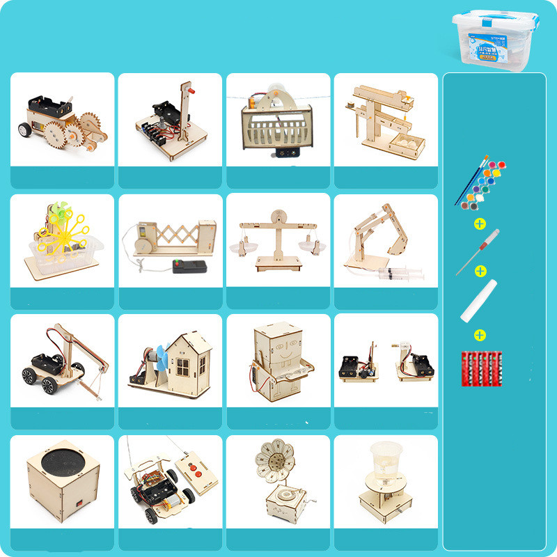 Experimental material package * 16pcs+Pigment pack * 1+screwdriver * 1+glue * 1+battery * 4
