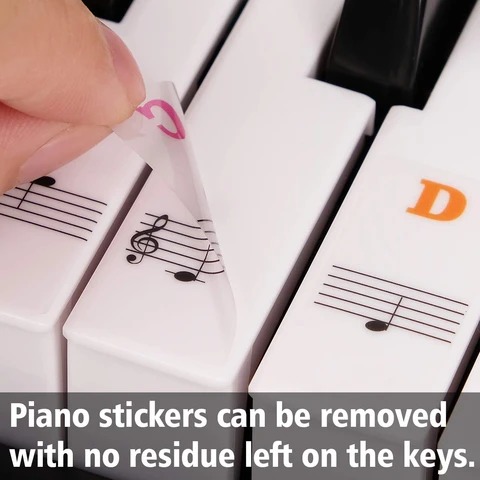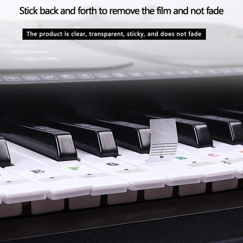 Are you having a hard time learning how to play the piano and do you want your kids to have fun and learn how to play the piano the easier way? This Ultimate Full Set Piano Key Sticker makes learning easier and it speeds up your memory for the keys so that you and your children can enjoy yourselves while playing your favorite piece in the piano. These piano key stickers are printed under the top layer to prevent ink fading, so they are always legible, and it can also be removed without leaving a residue.