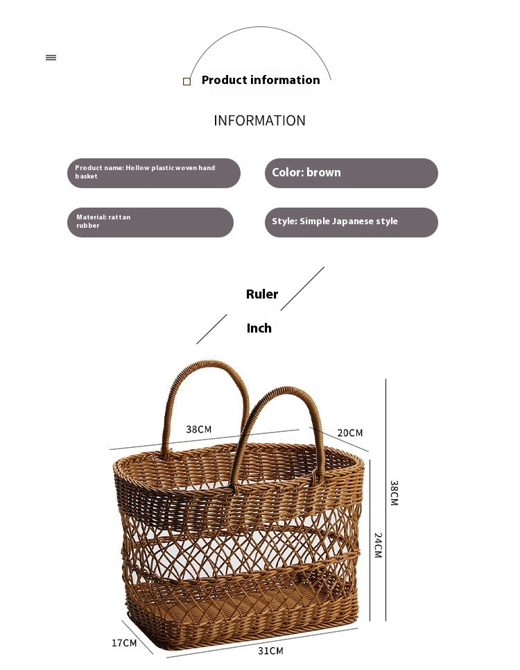 Picnic Basket Ins Style Props Rattan-like Hand-made Shopping Basket