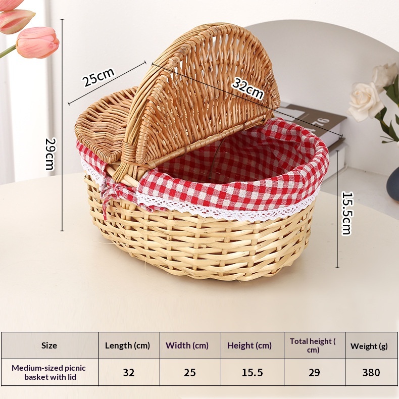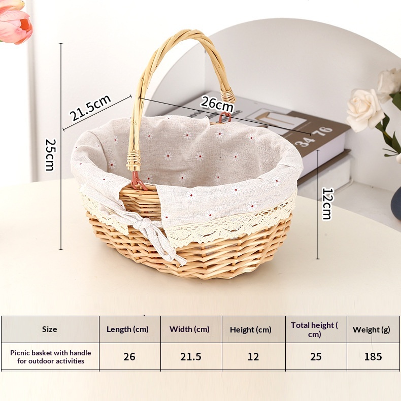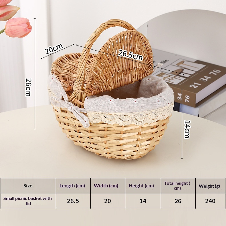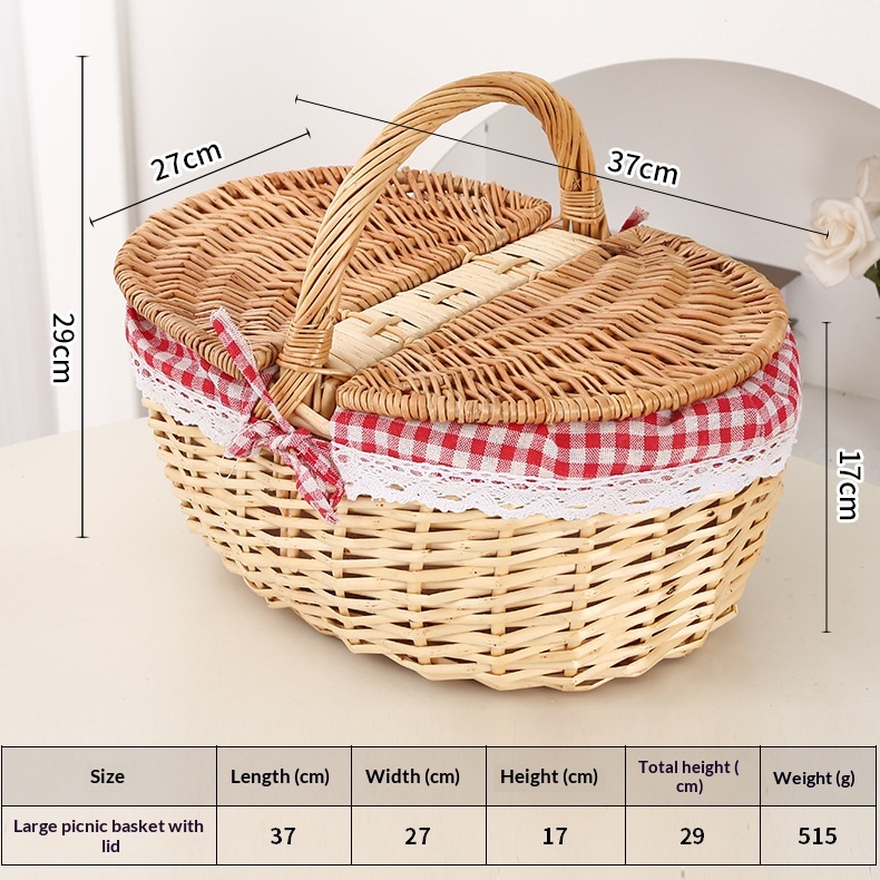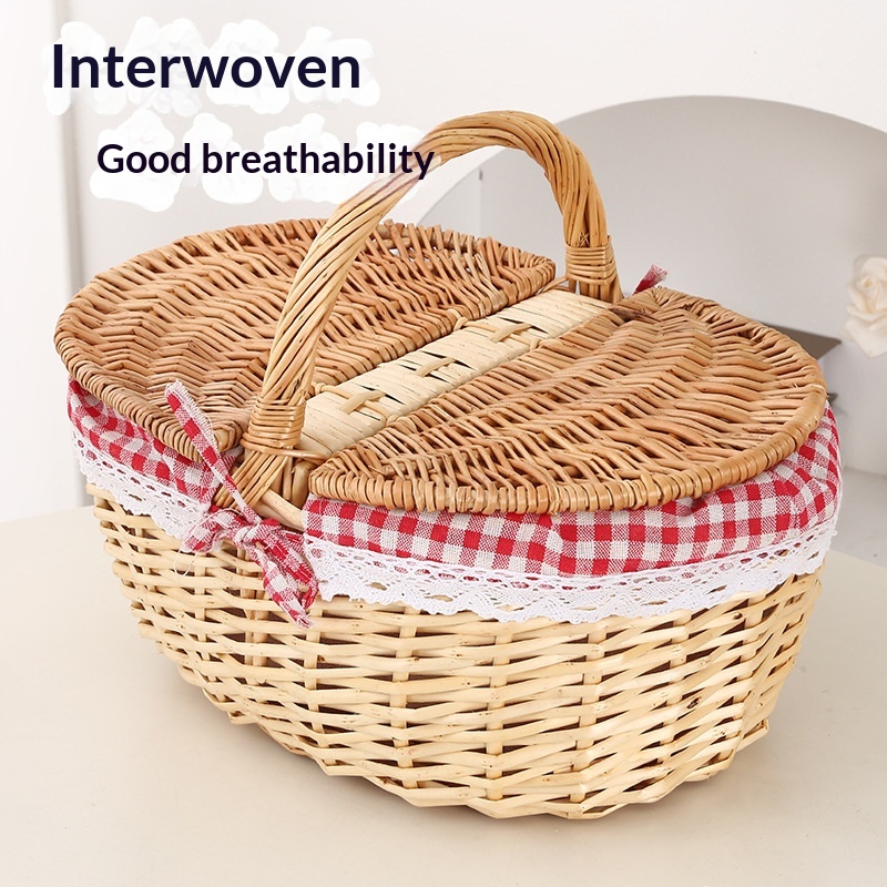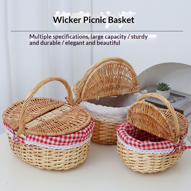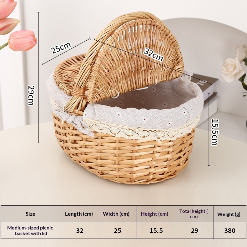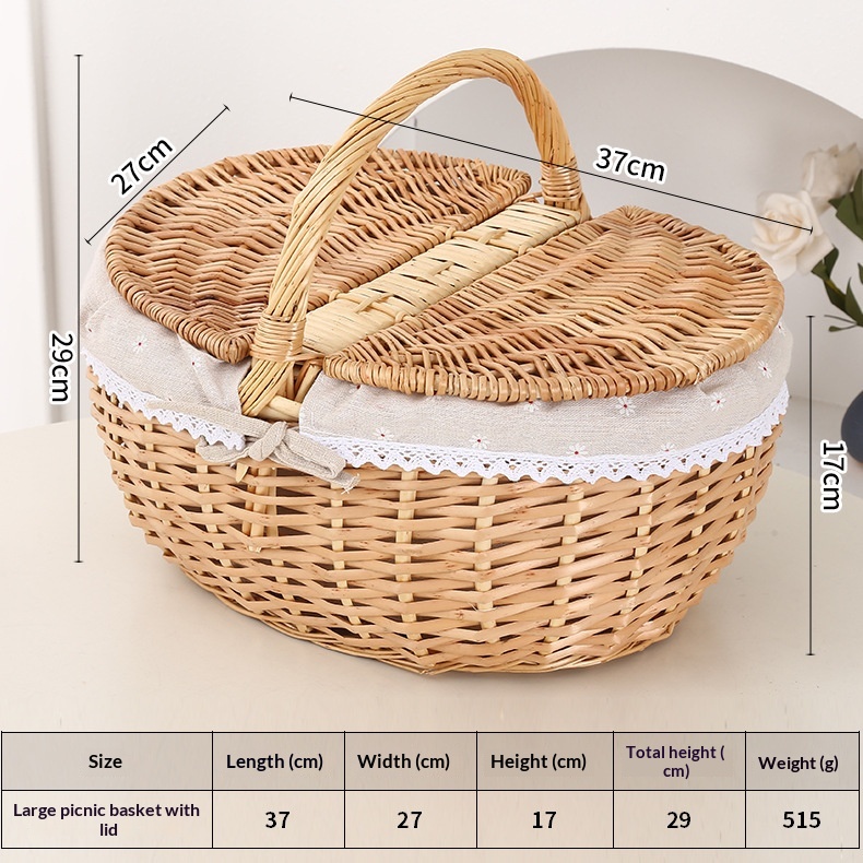 This picnic basket is handwoven from natural willow, combining practicality with decorative appeal. Its minimalist modern design effortlessly complements various home settings, serving both as a storage solution and a stylish decorative accent.
