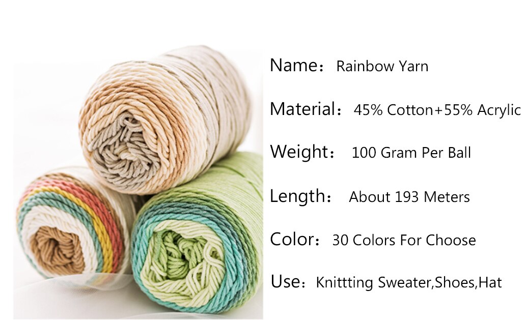 Composition and content: 45% cotton 55% acrylicSpinning process: worstedYarn Form: BallMain uses: weaving, sewing, hand knitting, knitting