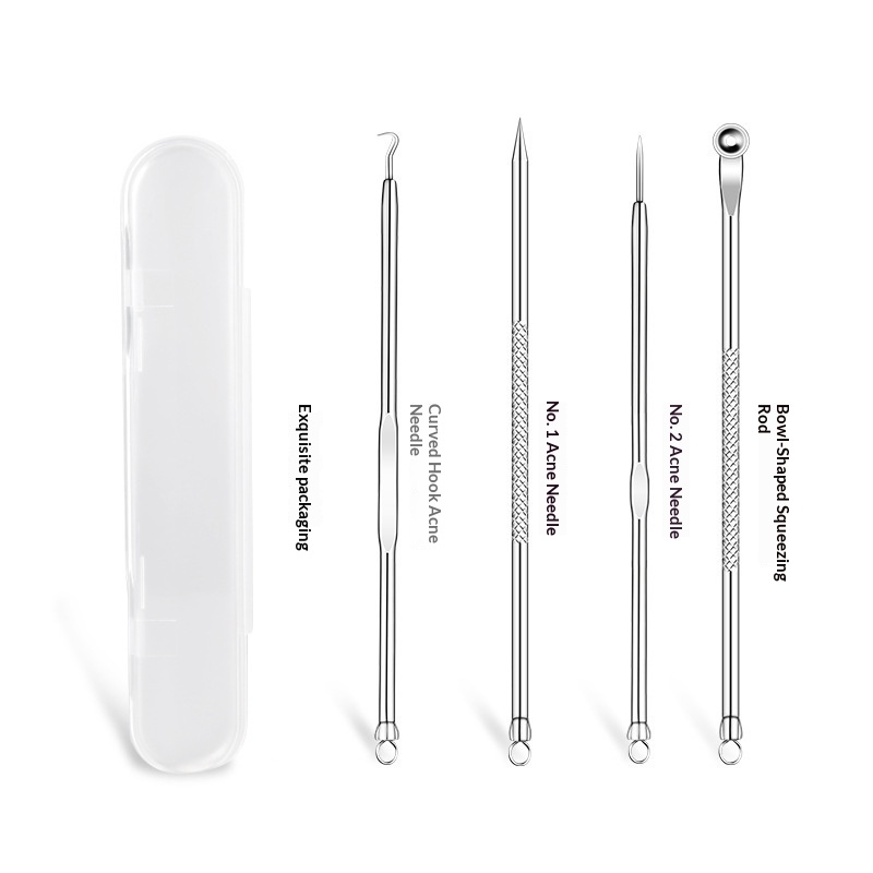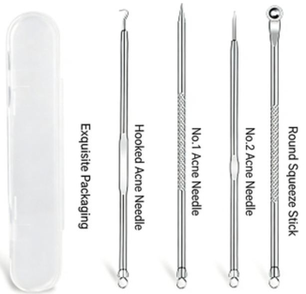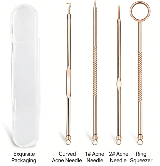 Color & Style Options: Silver Needle Set (4 pieces, no cardboard card), Rose Gold Needle Set (4 pieces, no cardboard card), Slanted-Tip Tweezers in Card Packaging, Curved-Tip Tweezers in Card Packaging, Single Slanted-Tip Blackhead Extractor, Single Straight-Tip Blackhead Extractor, Single Curved-Tip Blackhead Extractor, 8-Piece Blackhead Extractor Set with 4 Alcohol Swabs, 7-Piece Blackhead Extractor Set with 4 Alcohol Swabs, Slanted Tip + Curved Tip + 4 Needles + 4 Alcohol Swabs, Straight Tip + Slanted Tip + 4 Needles + 4 Alcohol Swabs, Straight Tip + Curved Tip + 4 Needles + 4 Alcohol Swabs