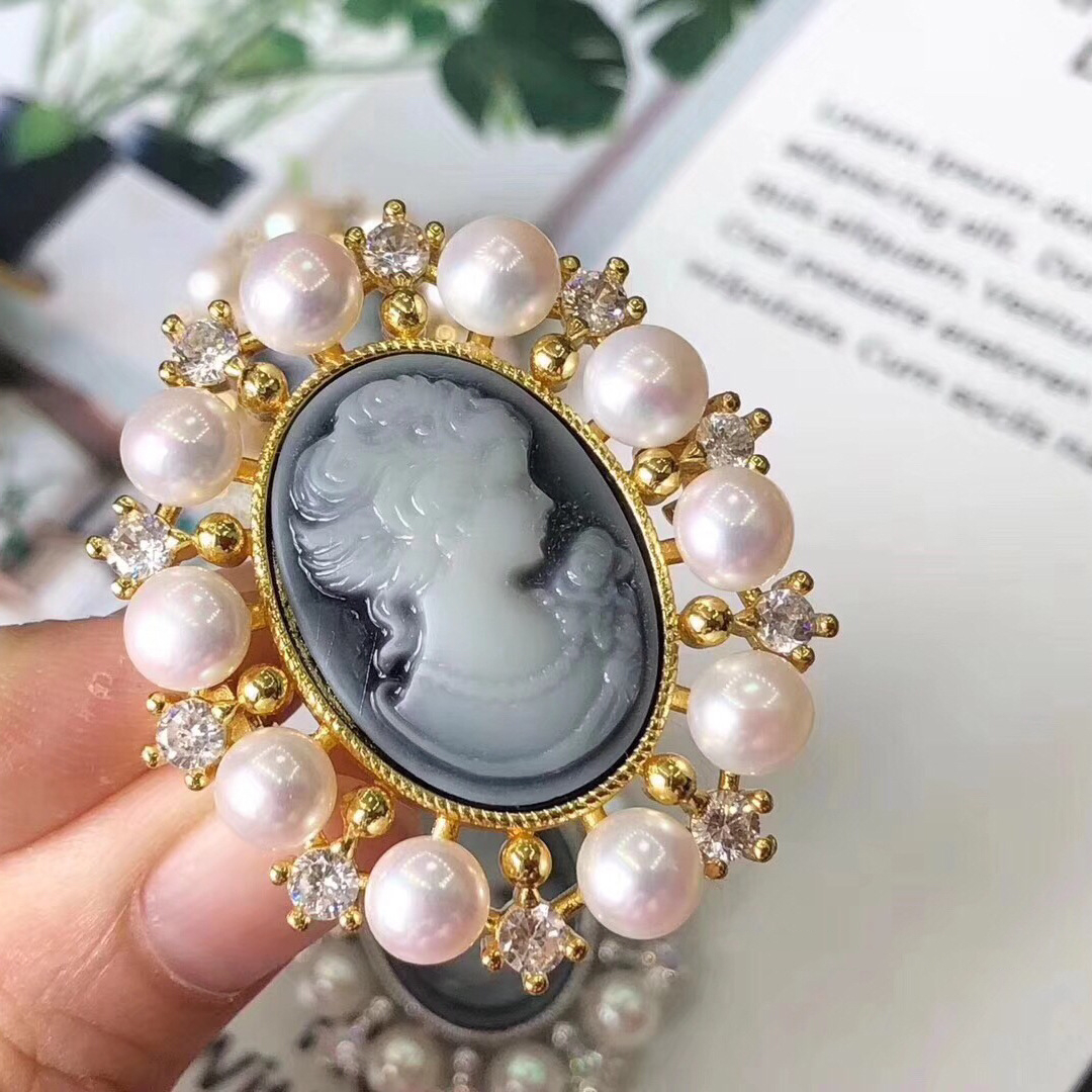 Color: golden brooch with freshwater pearls, silver brooch with freshwater pearls, golden brooch empty holder, silver brooch empty holder