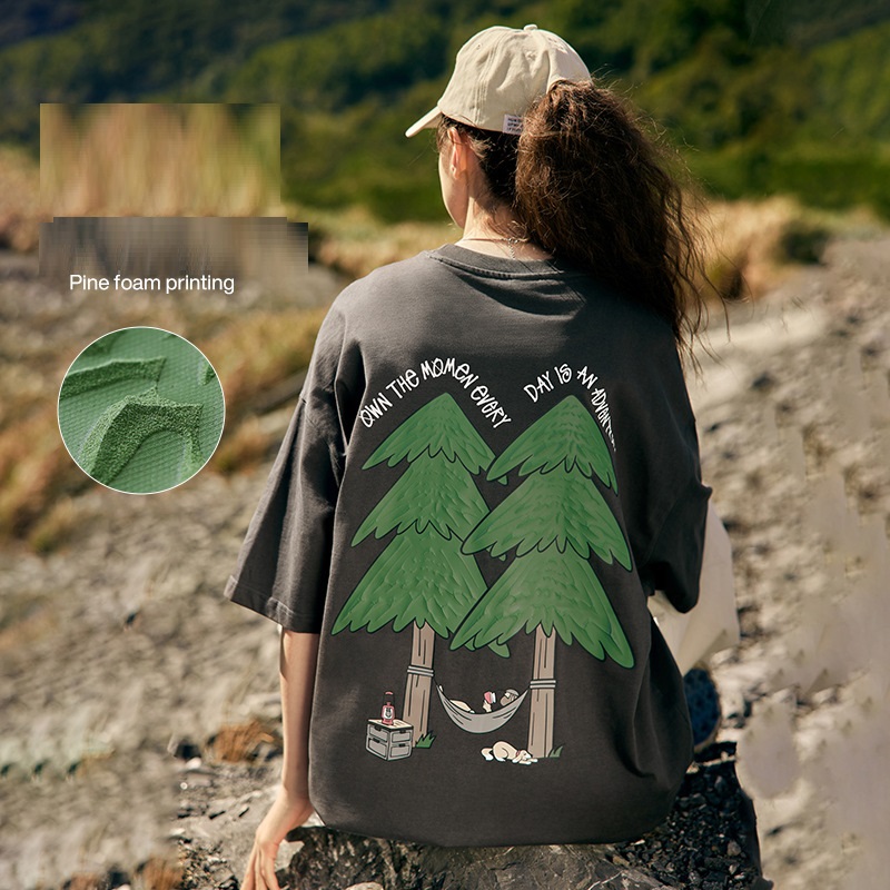 Pine Puff Print T-shirt Casual Pure Cotton