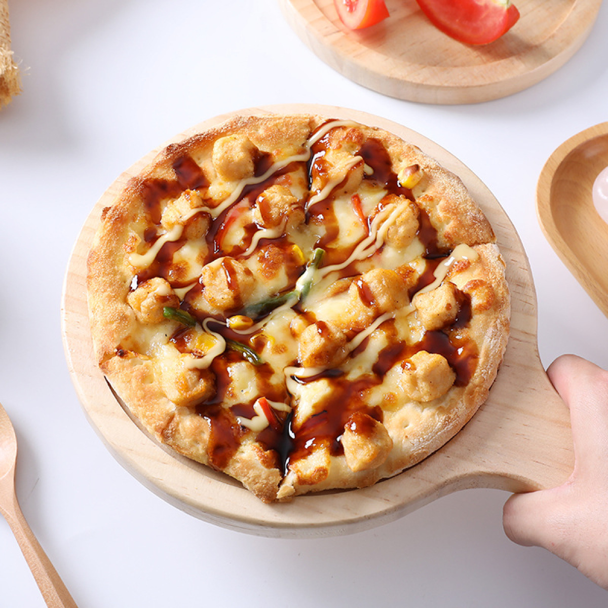 Pine Round Pizza Pan With Handles