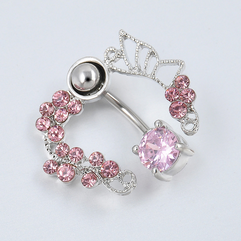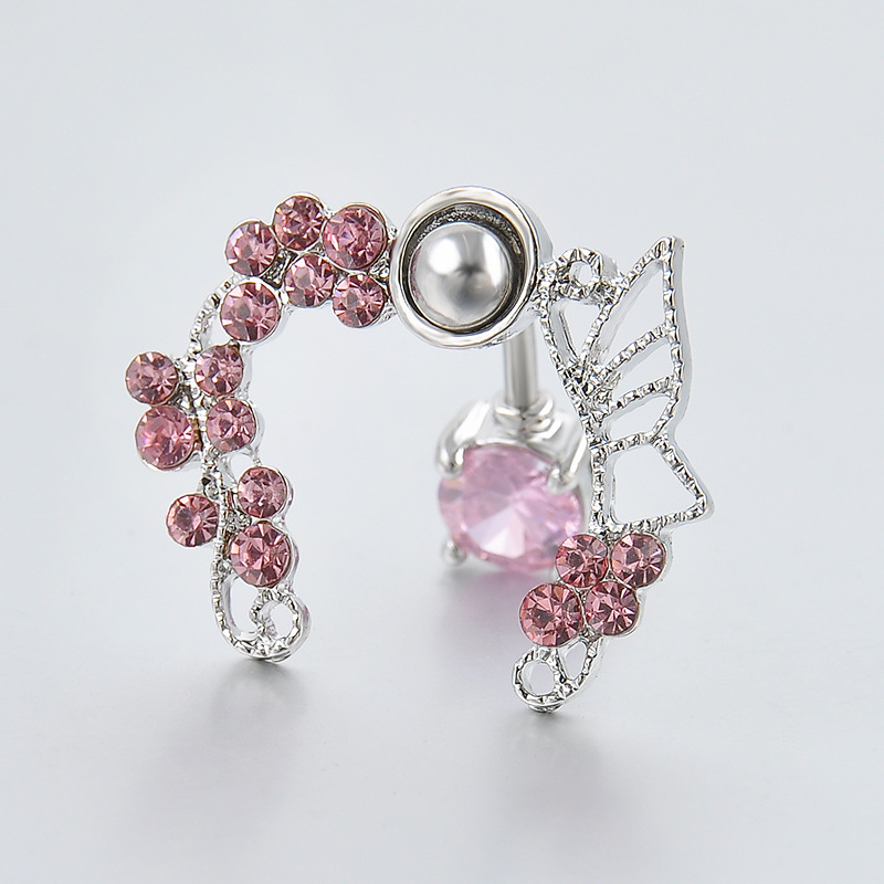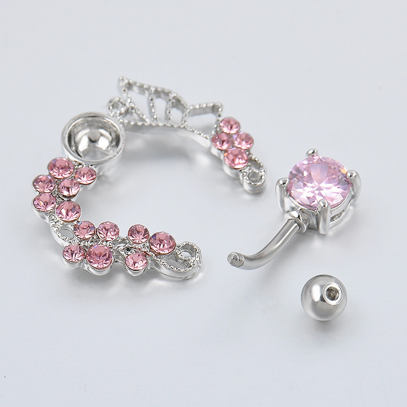 Pink butterfly zircon belly button ring