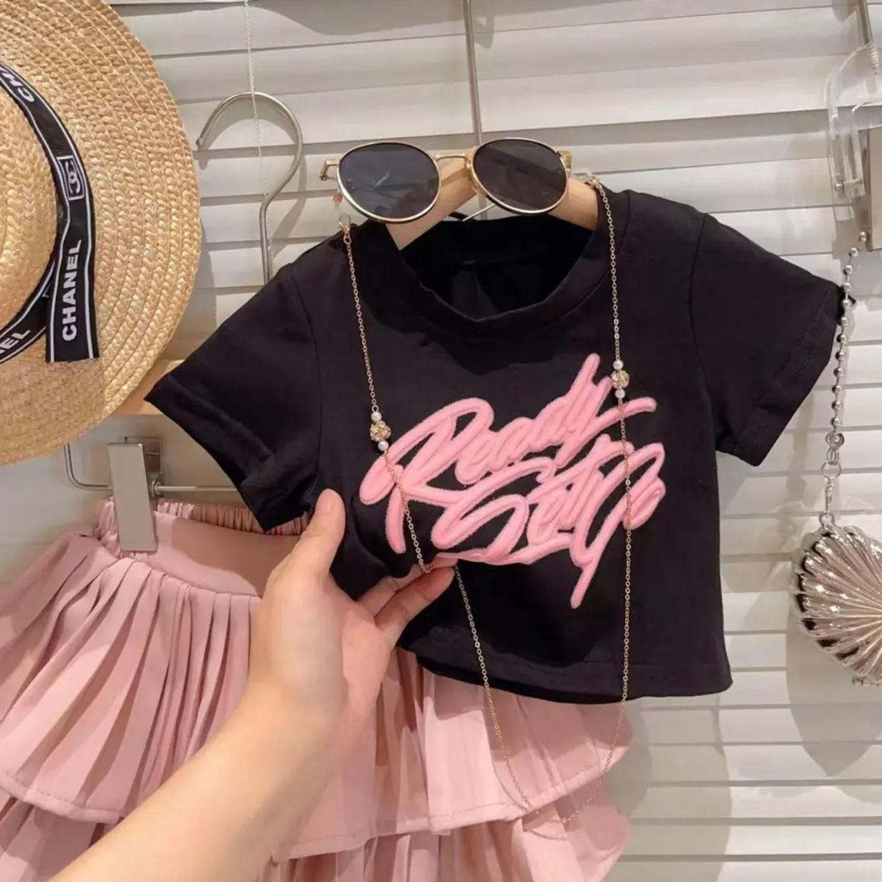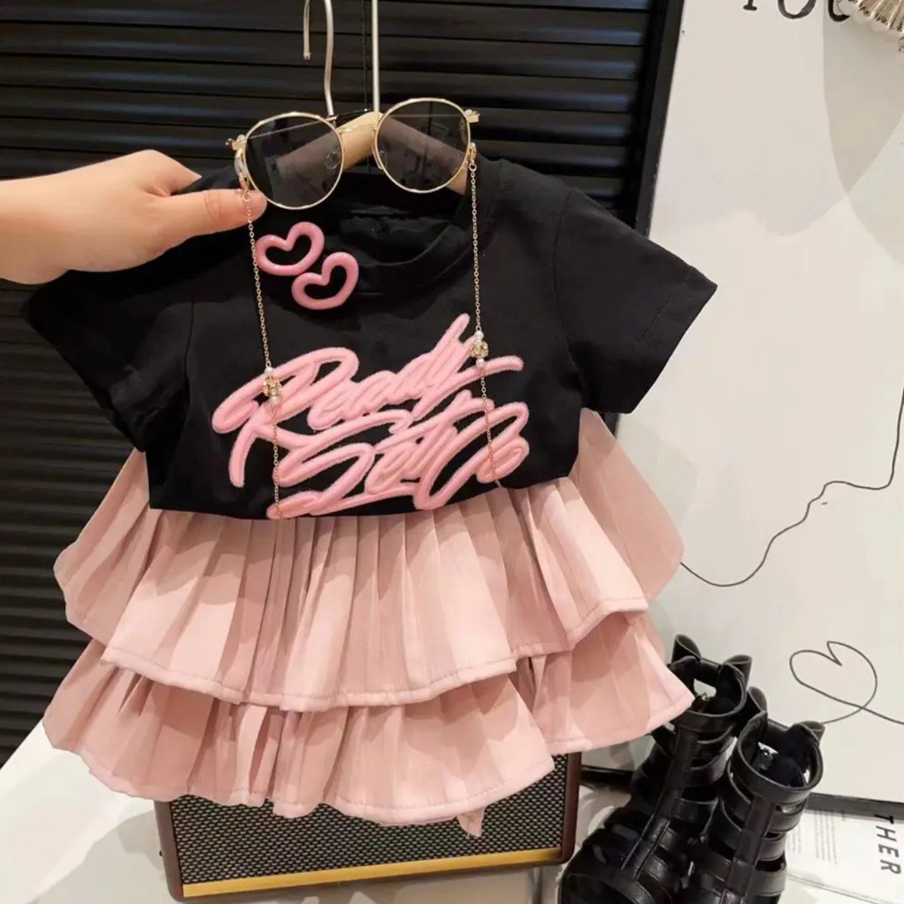 Color: Black cartoon, pink skirt