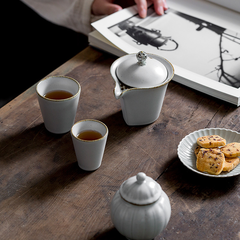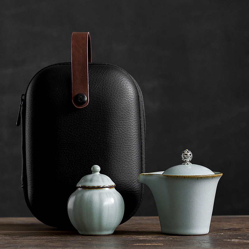 Color: One pot and two cups + tea caddy-moon white, one pot and two cups + tea caddy-sky green, one pot and two cups + tea caddy-Yahei