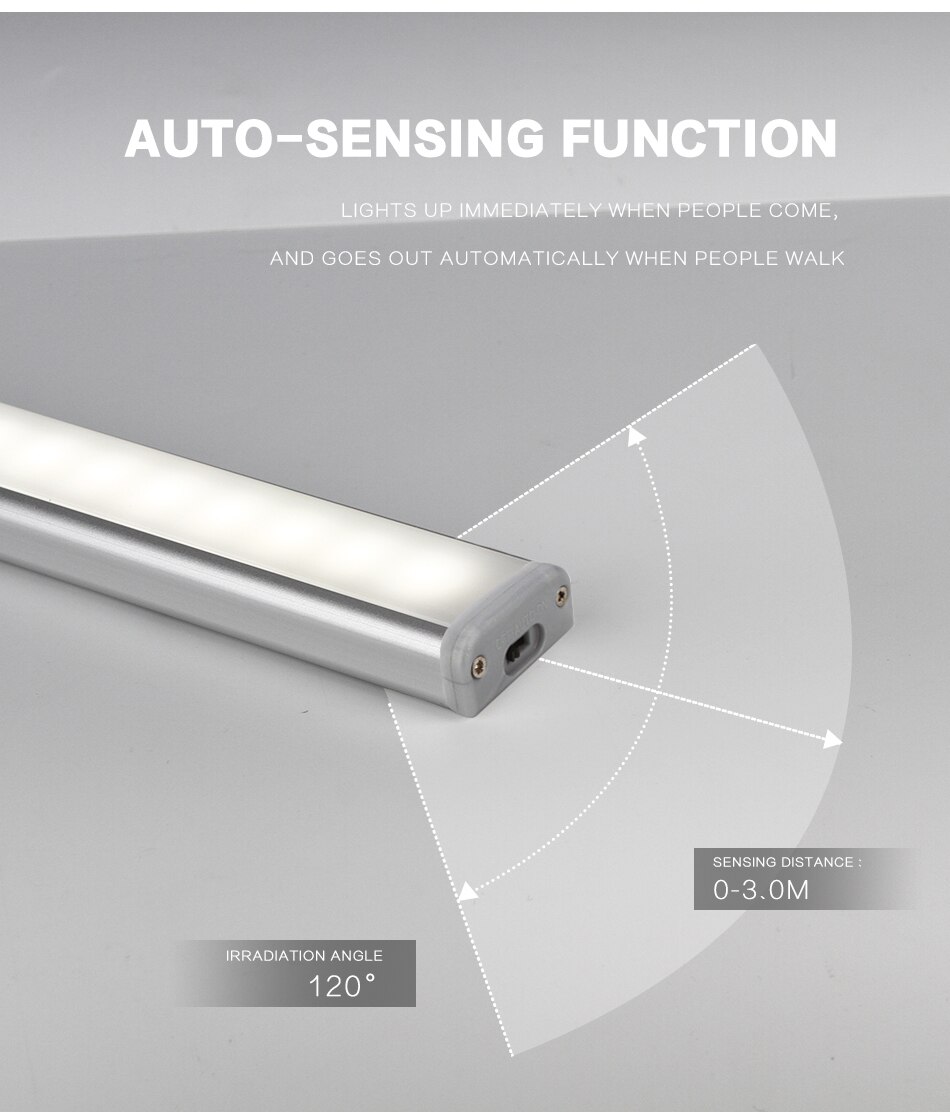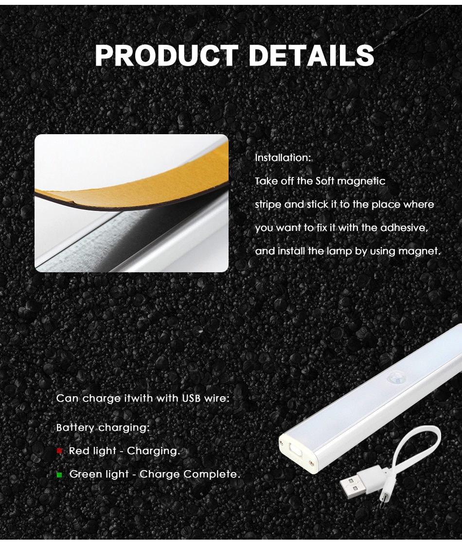 2. Function: When you enter the sensing area in the dark, the light will work automatically. The indicator light is a lithium battery, which can also be charged with a USB cable, which is easy to install.