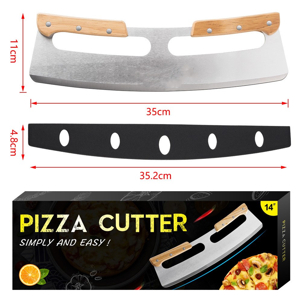 2. Pizza Cutter Rocker edge is ergonomically designed, using a curved blade, the blade button is double-sided cutting edge, easy to cutting pizza, stress concentrated in a point, v-shaped edge.