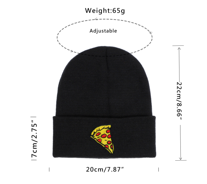 Pizza Embroidered Knitted Hat Outdoors To Keep Warm