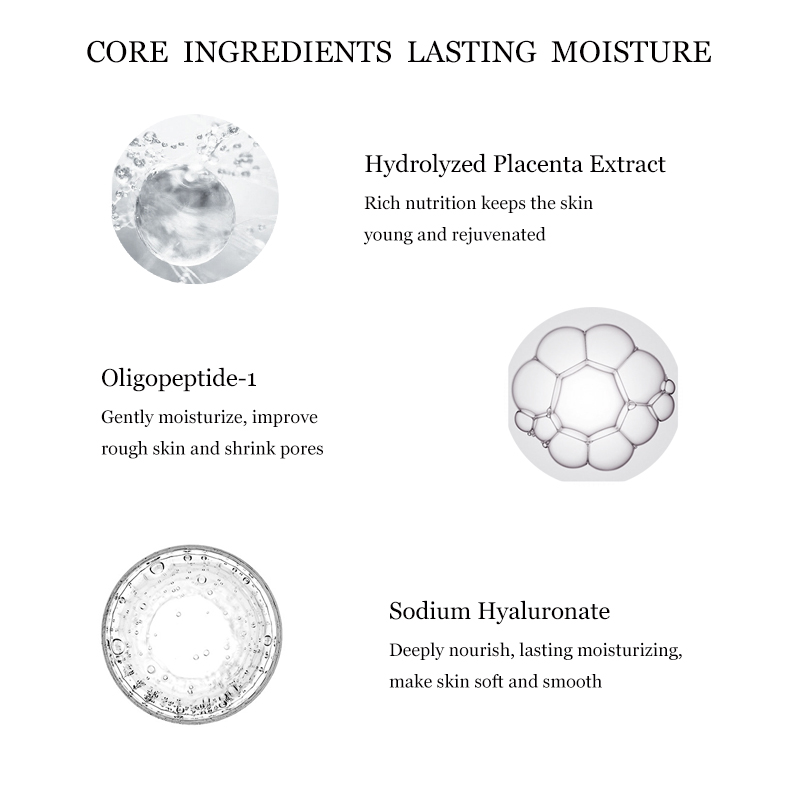 Ingredients: Hydrolyzed Placenta Extract, Oligopeptide-1, Hyaluronic Acid