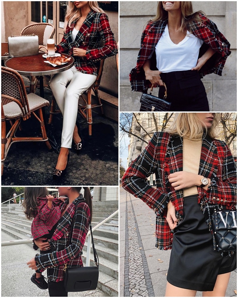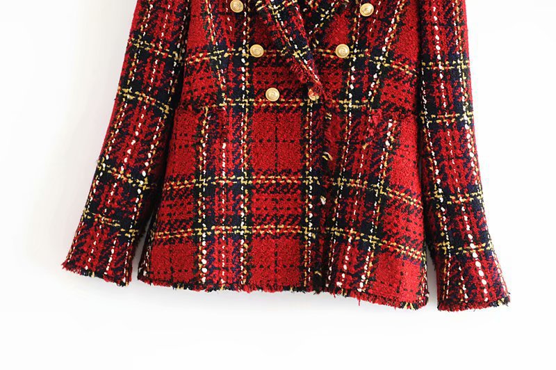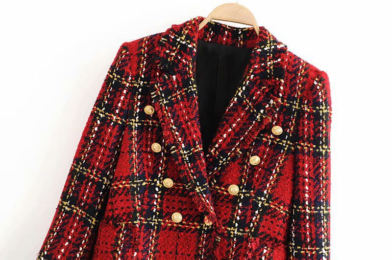 Plaid buttoned woolen blazer