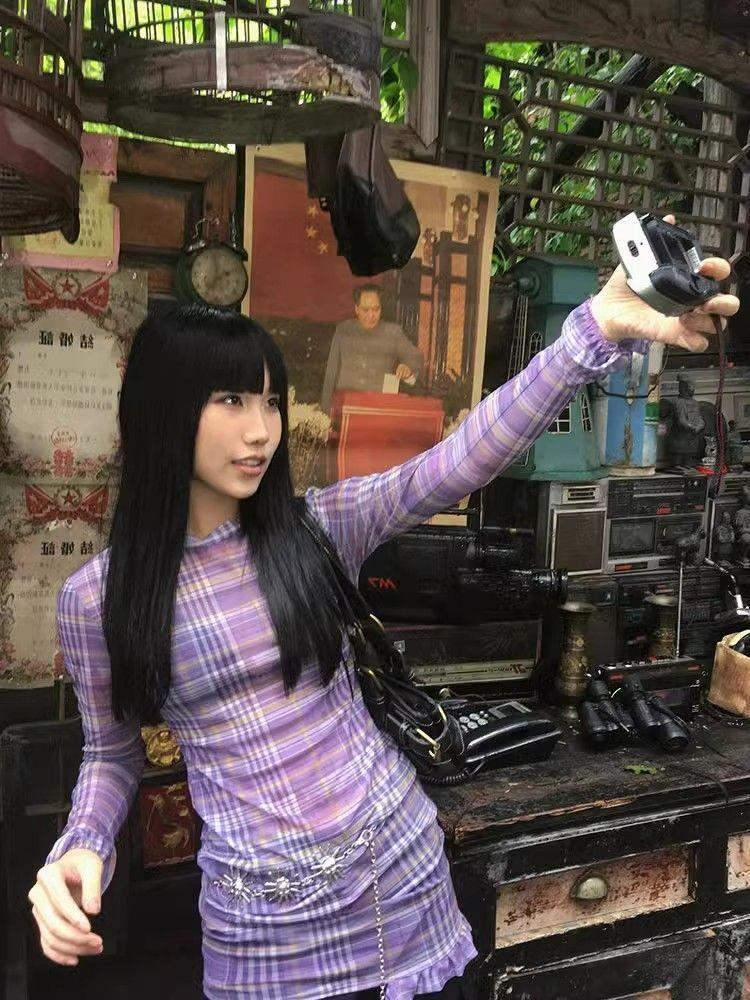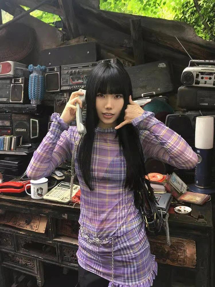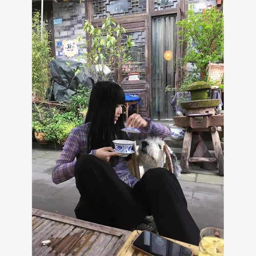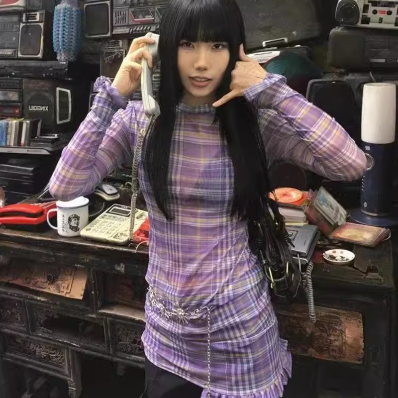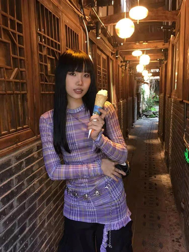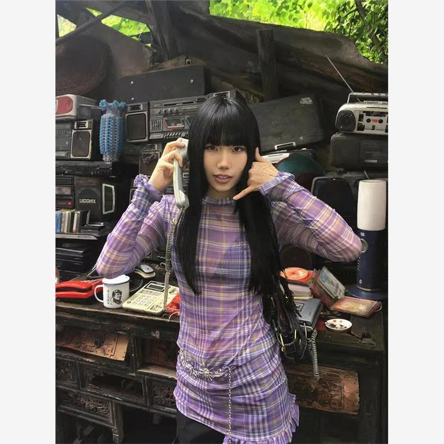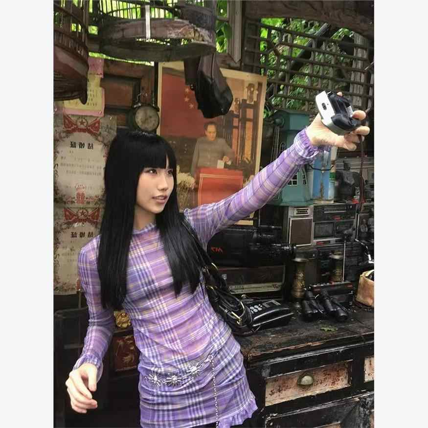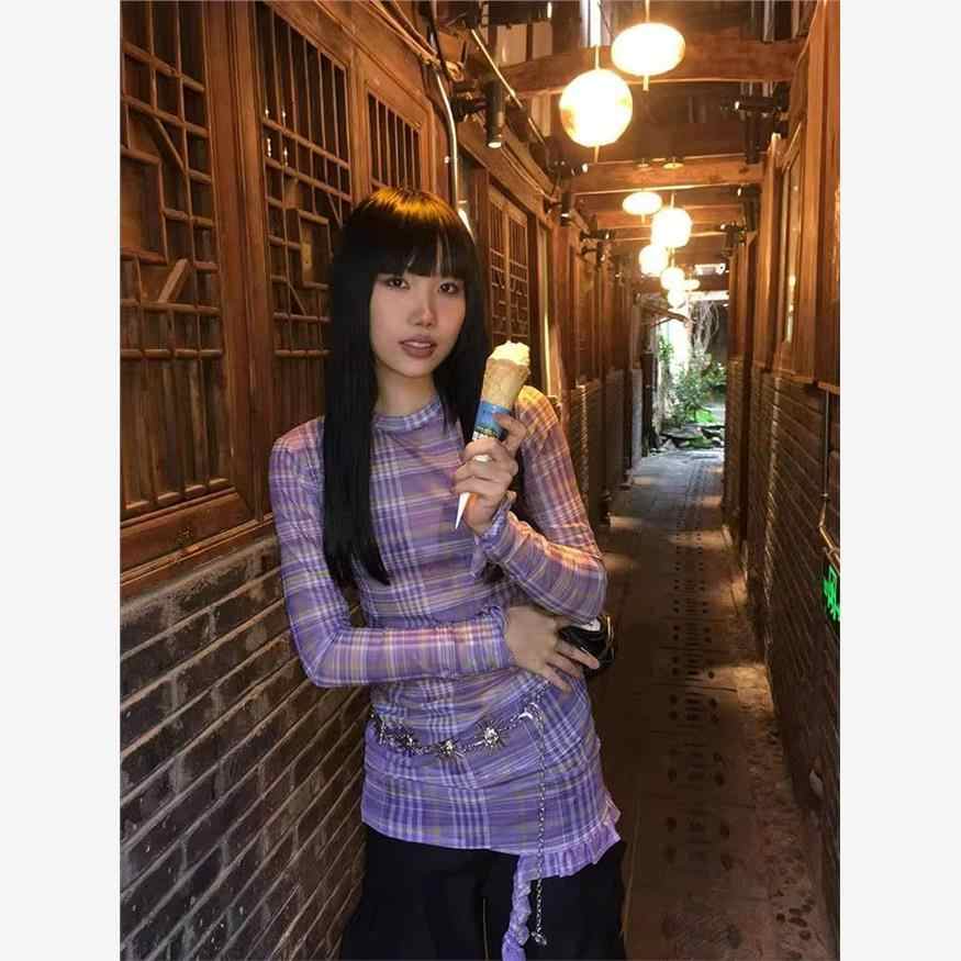 Plaid Gauzy Bottoming Shirt Long-sleeved T-shirt Mid-length Top